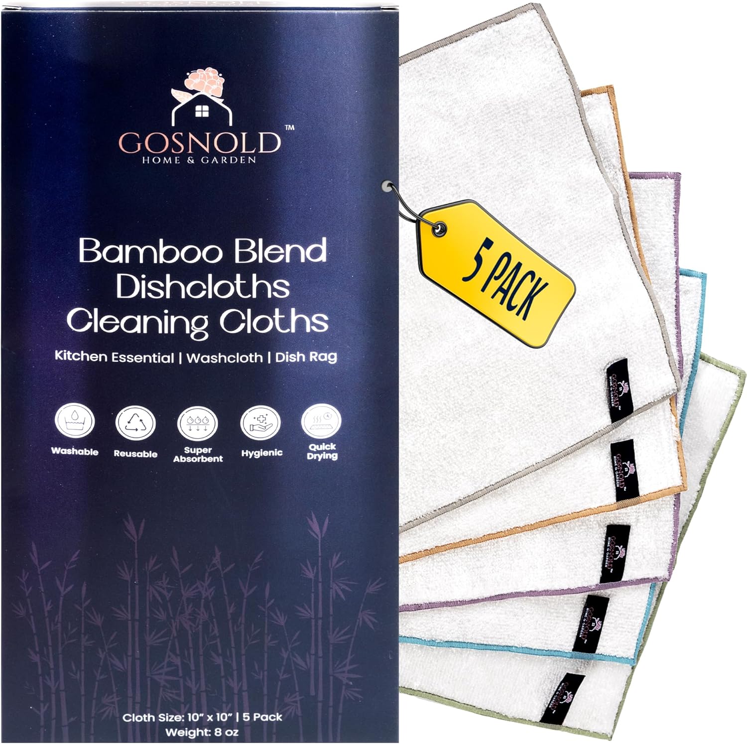 Bamboo Blend Dish Cloths & Cleaning Towels for Kitchen & Home – Absorbent, Quick-Dry, Non-Scratch Washcloths, 10×10 Inches, 5 Pack, Reusable, Hygienic, Multi-Color