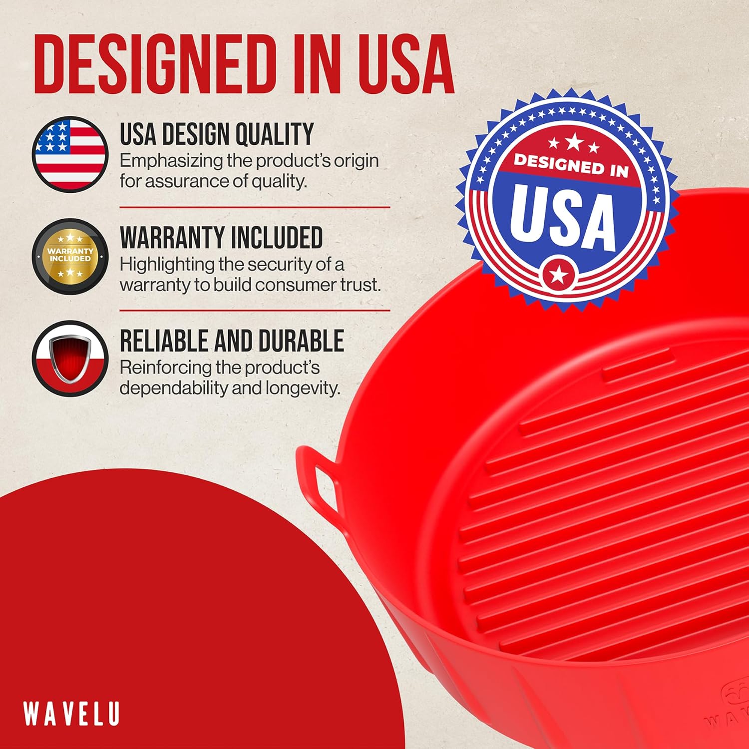 Designed in the USA With a Warranty – Our silicone liners for air fryers are backed by a lifetime warranty, supporting our commitment to quality. These reusable silicone liners are the ultimate in air fryer accessories, allowing you to get the most out of your appliance
