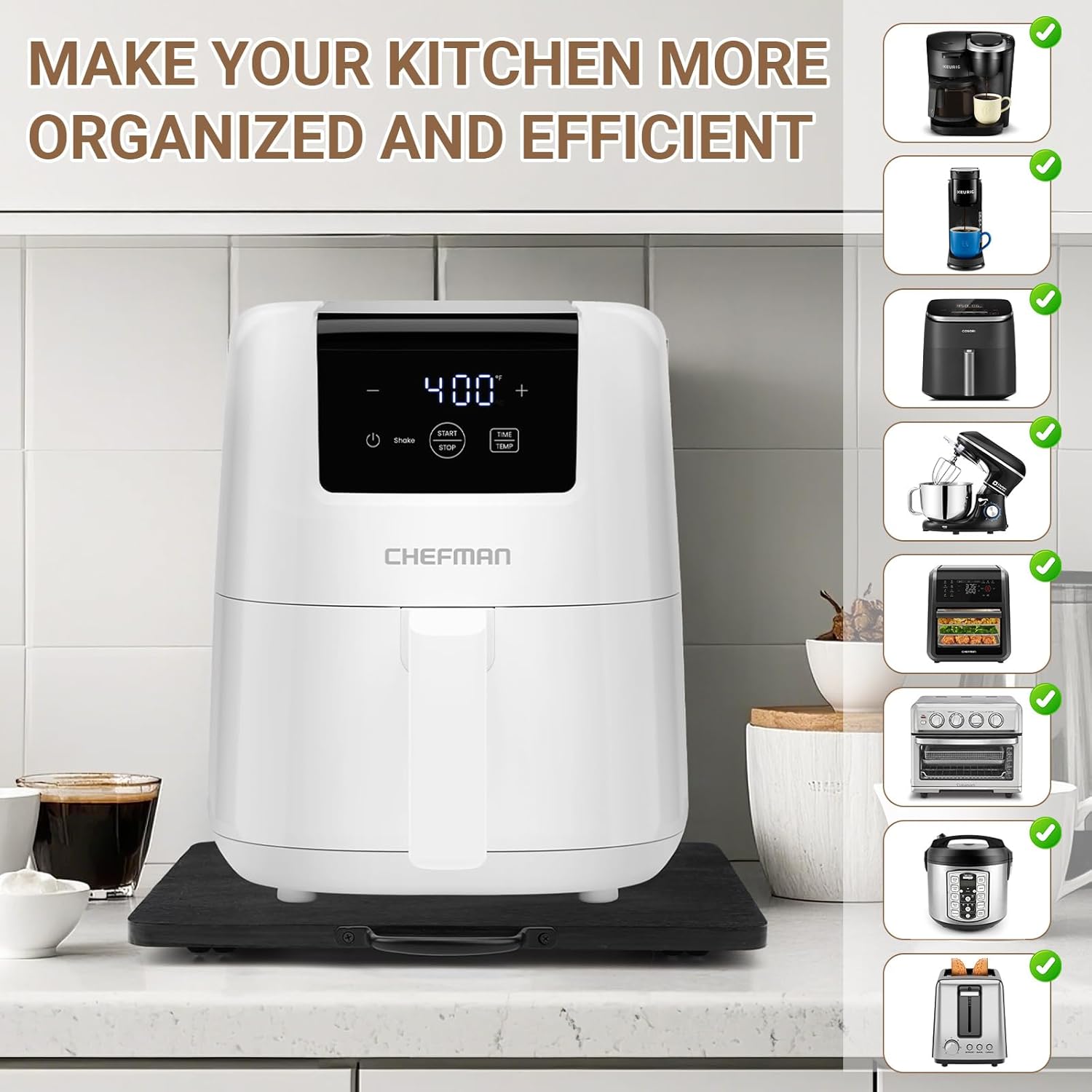【Transform Your Kitchen Space】With the Ginzeca tray, you can elegantly organize and access your kitchen appliances. Imagine gliding your coffee maker into position for your first cup of coffee or smoothly moving your air fryer into place while prepping a delicious lunch. It helps improve kitchen efficiency, keeps your countertops clutter-free, and transforms your kitchen into a well-organized, stylish workspace.