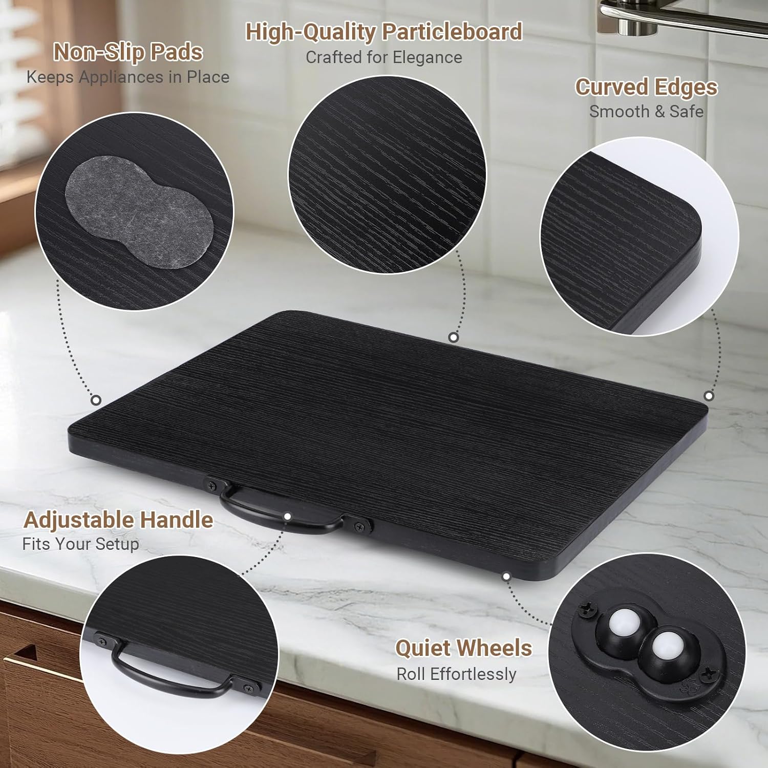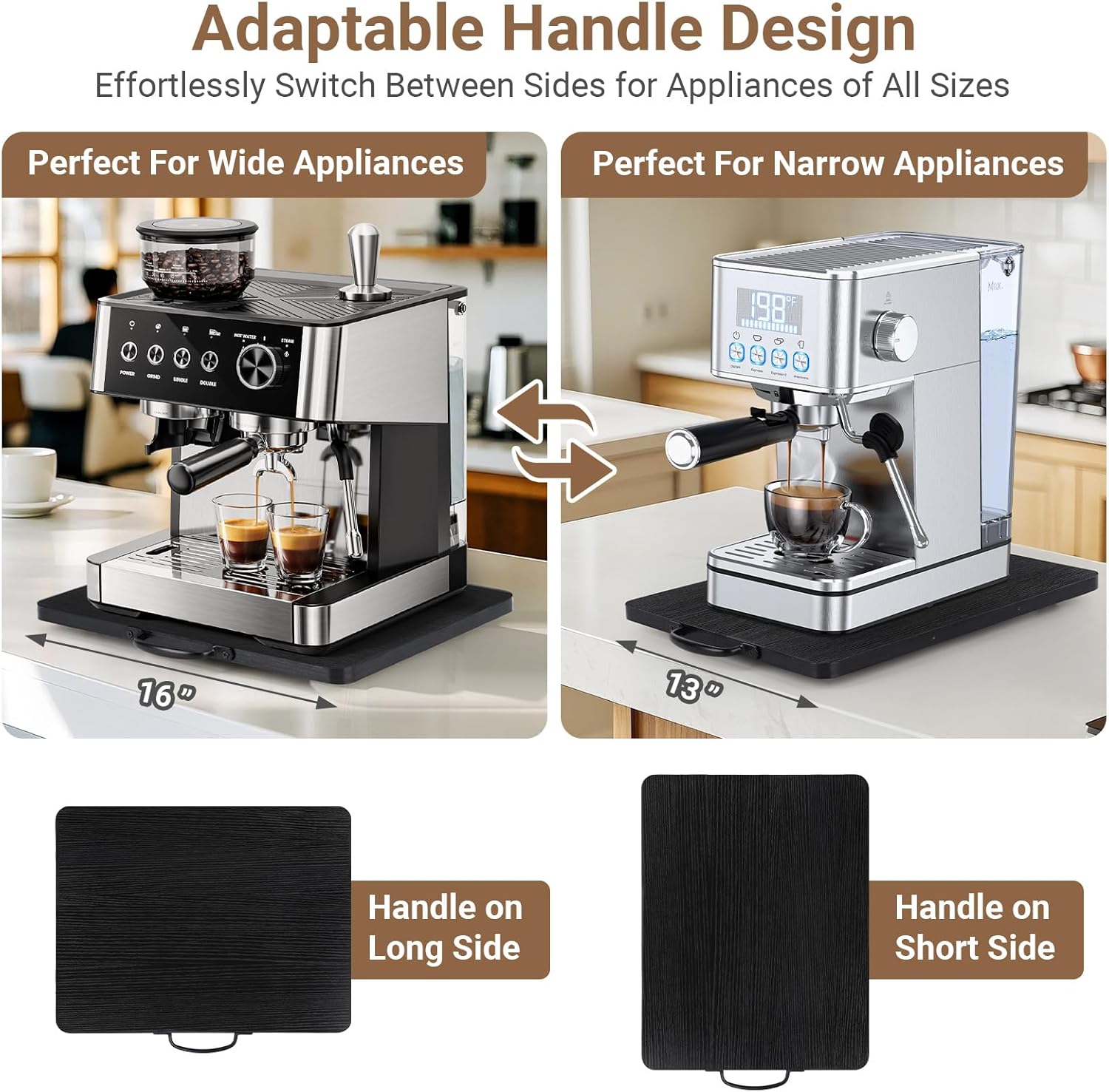 Appliance Slider, 360°Rolling Tray for Kitchen Appliances, Wooden Sliding Tray for Coffee Maker, Coffee Pot Slider for Countertop, Sturdy & Easy to Slide from Under The Cabinet (Black, 13” x 16”)