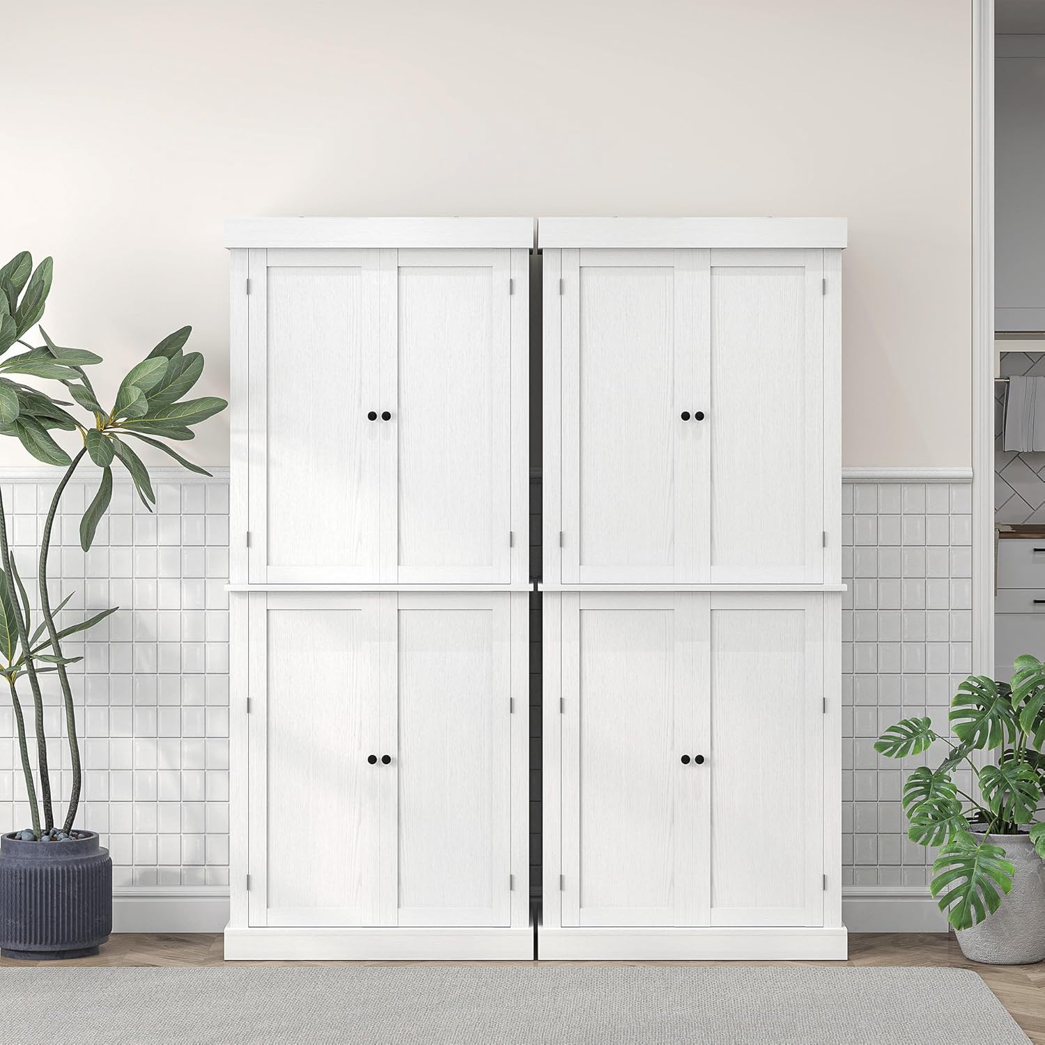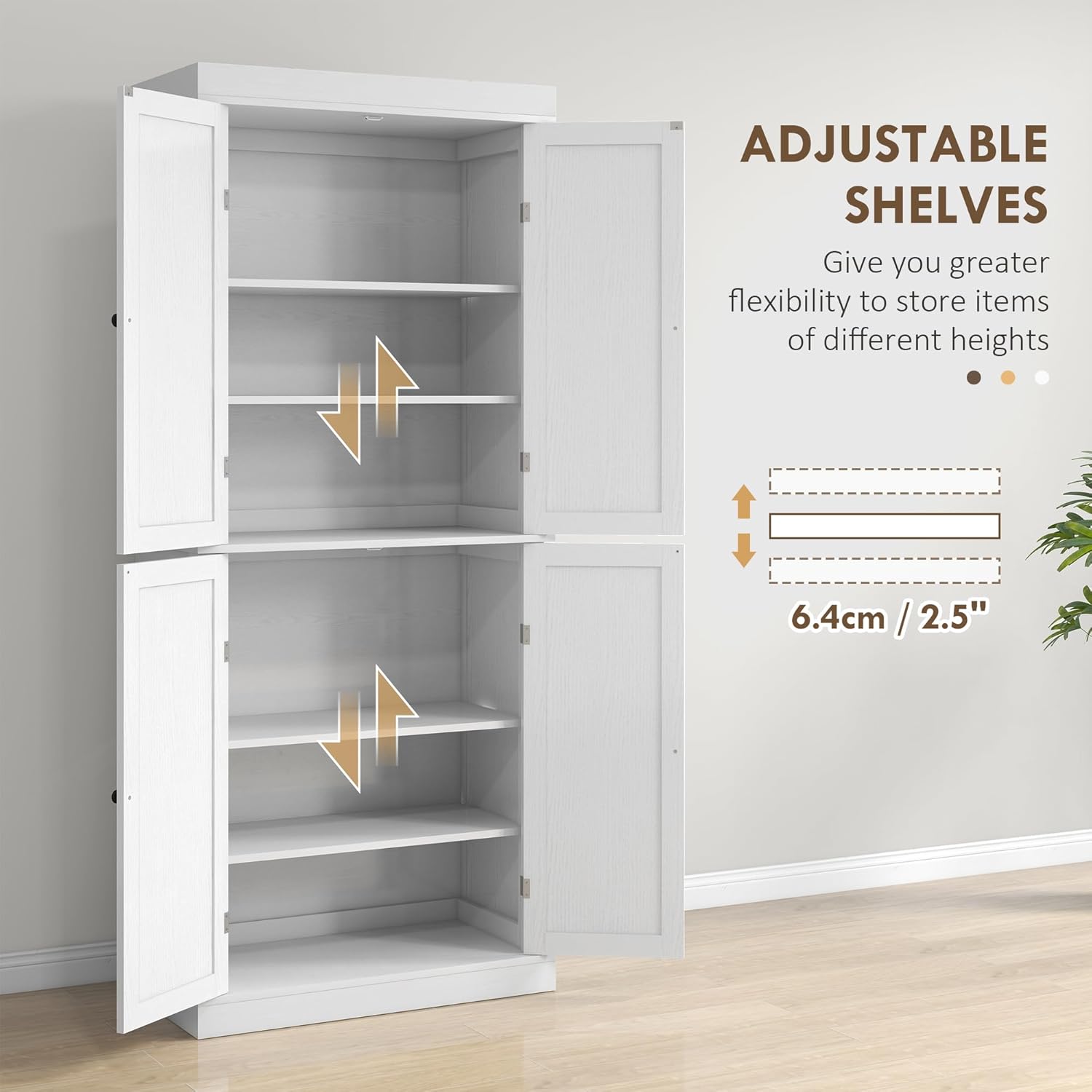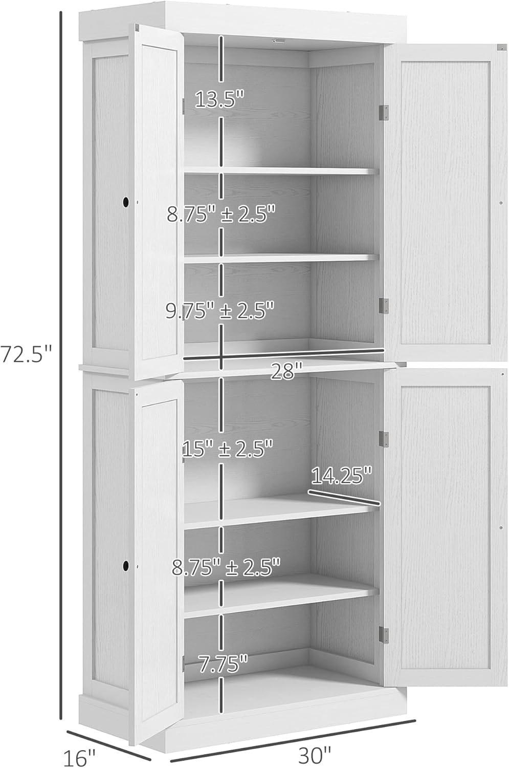 HOMCOM 72.5″ Freestanding Kitchen Pantry Cabinet, Tall Storage Cabinet with 4 Doors and 2 Adjustable Shelves for Dining Room, White Wood Grain