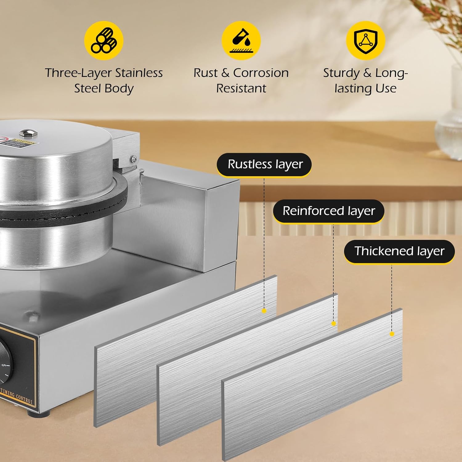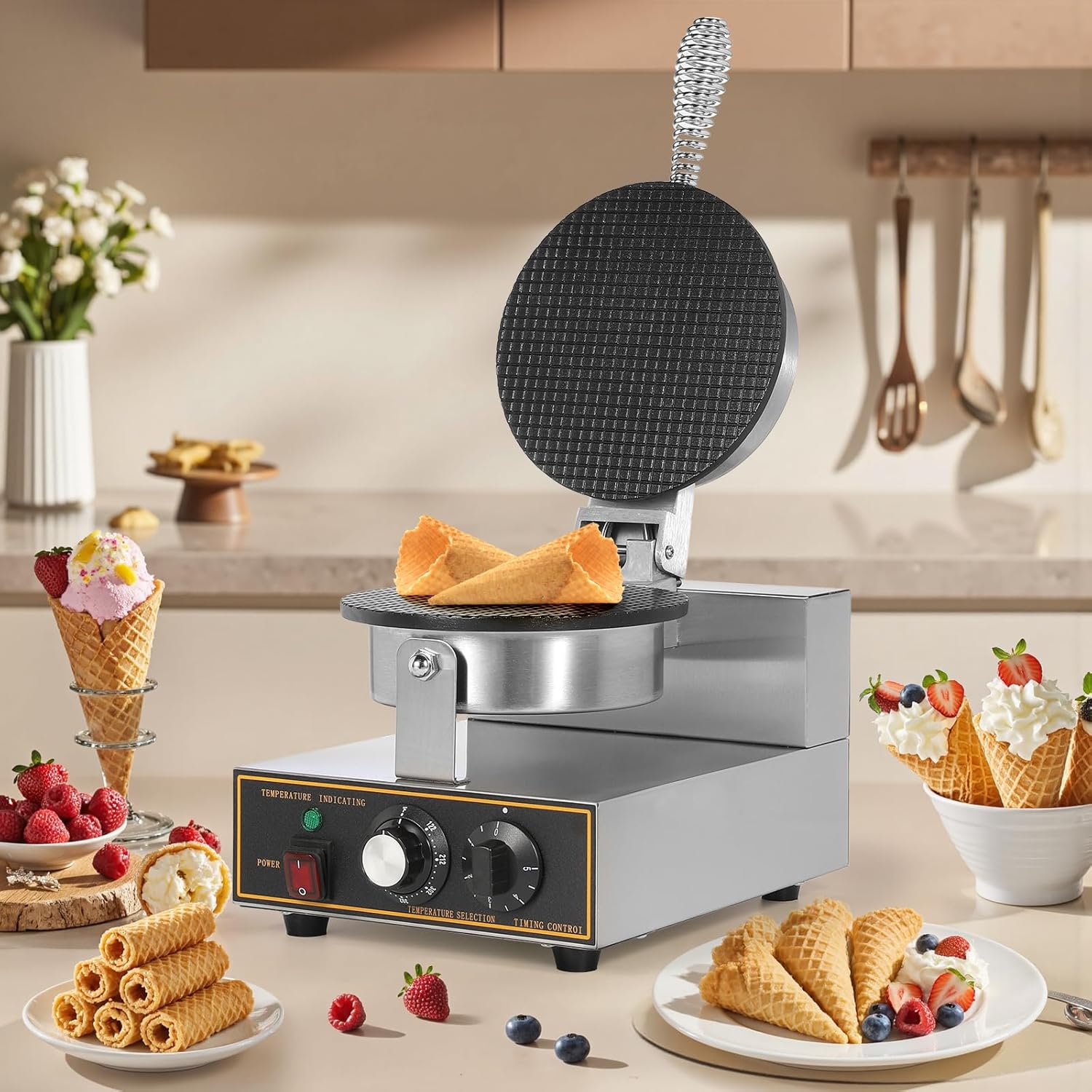 [Wide Uses]- Household or commercial electric ice cream cone maker machines can be used in homes, kitchens, parties, restaurants or food stalls to make all kinds of cones, ice cream rolls.