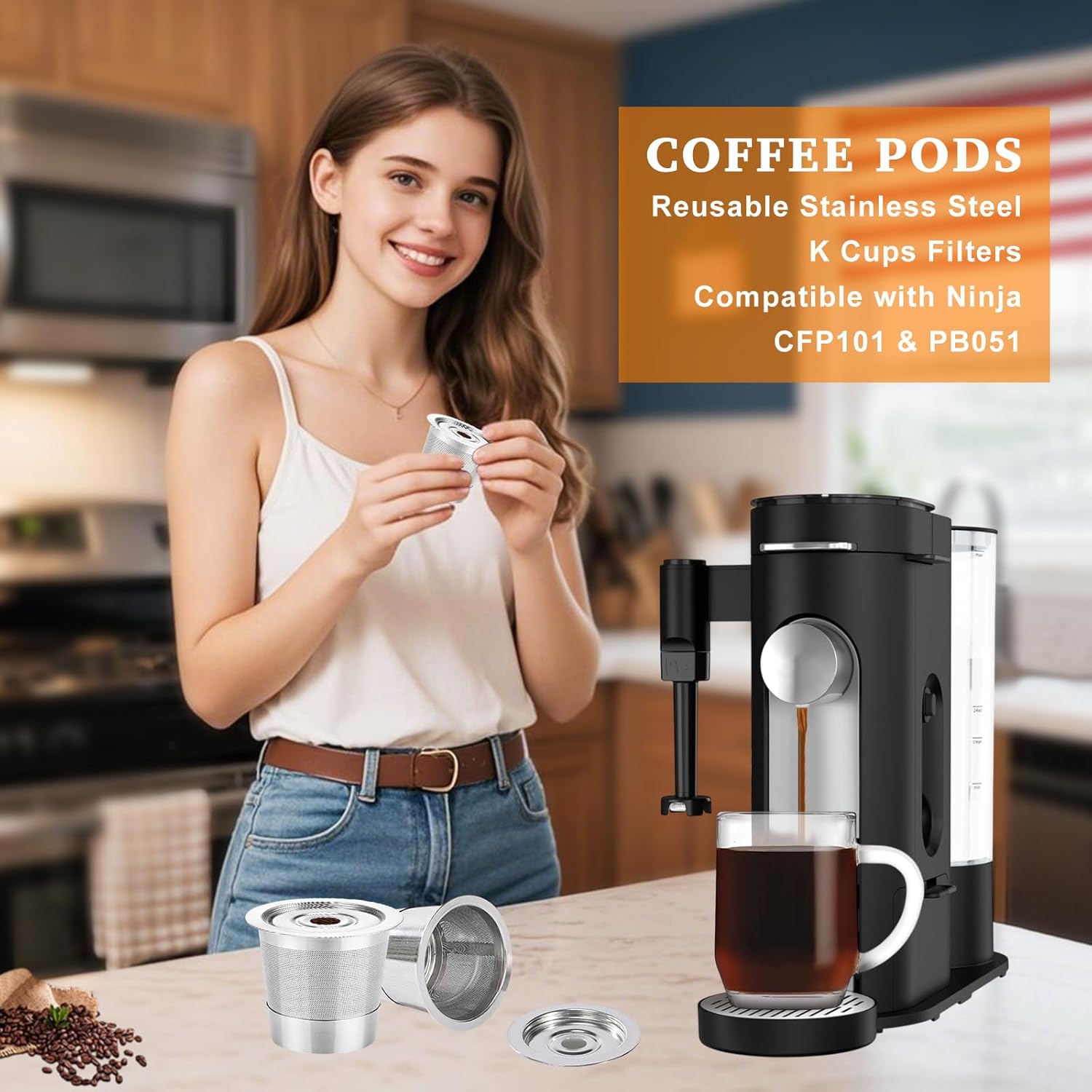 Reusable K Cups Compatible with Ninja Pods and Grounds Coffee Maker, Stainless Steel K Cup for Ninja Dual Brew CFP101 & Ninja Single-Serve PB051/PB041, Reusable Coffee Filter Pods Accessories (2 Pack)