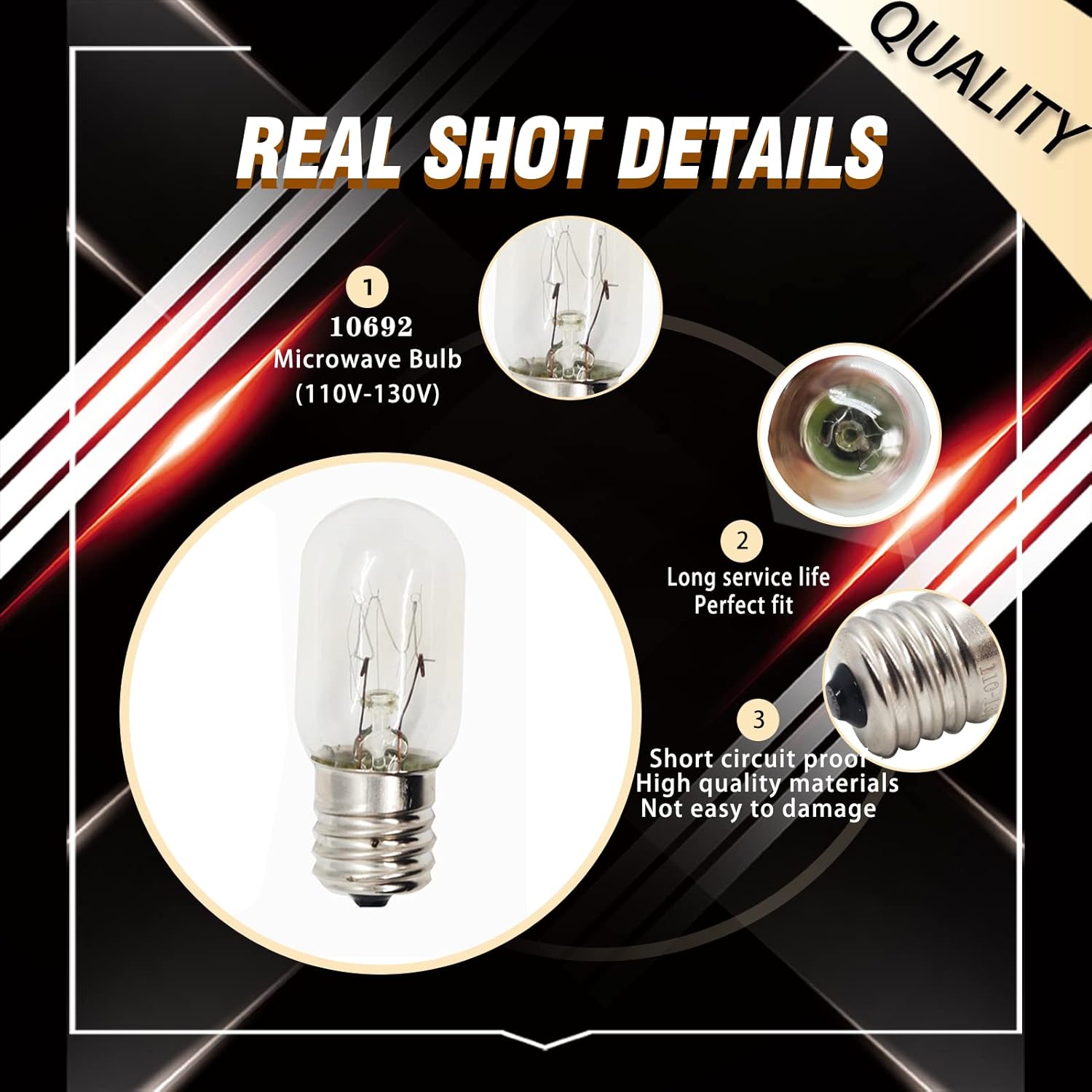 【Latest Quality】10692 microwave light bulbs under hood better quality than before, made of higher quality materials to make them more sturdy.Easy installation, perfect fit.It is only compatible with GE microwave oven lights.
