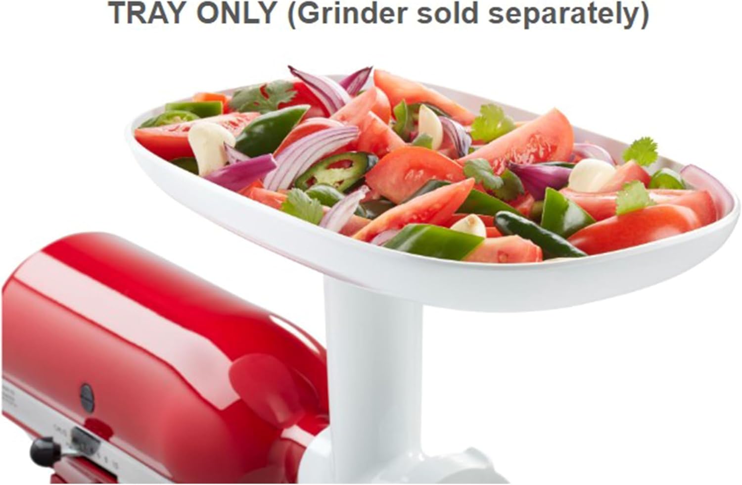 Easily process larger batches of ingredients with the KitchenAid® Large Food Tray that attaches to your KitchenAid® Food Grinder Attachment and is powered by your KitchenAid® Stand Mixer.* * Food grinder model KSMFGA and Stand Mixer sold separately. Not compatible with discontinued Food Grinder, model FGA.