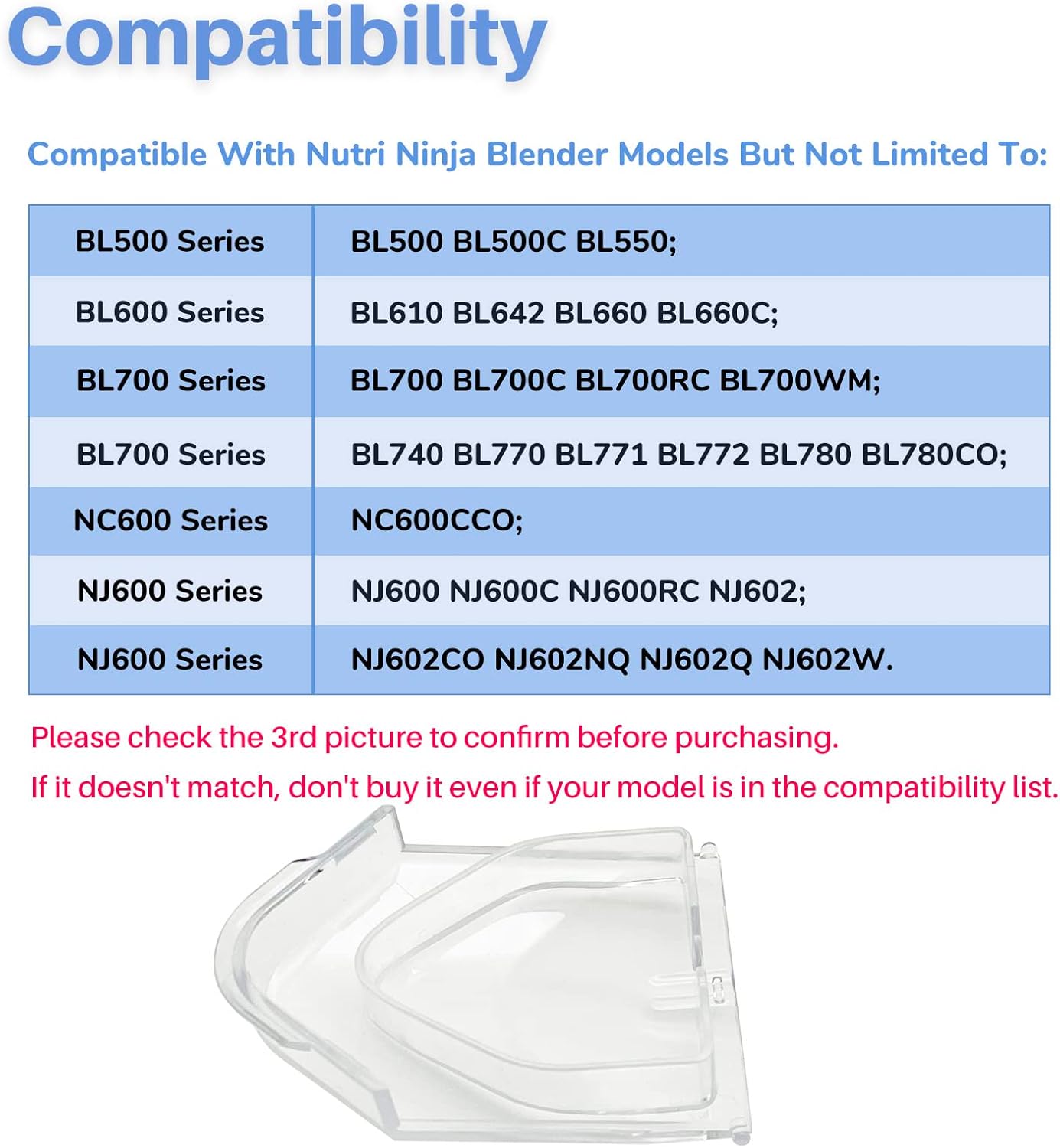 【COMPATIBILITY】: Compatible with Ninja Blender BL500 BL500C BL550 BL610 BL642 BL660 BL660C BL700 BL700C BL700RC BL700WM BL740 BL770 BL771 BL772 BL780 BL780CO NC600CCO NJ600 NJ600C NJ600RC NJ602 NJ602CO NJ602NQ NJ602Q NJ602W and more.