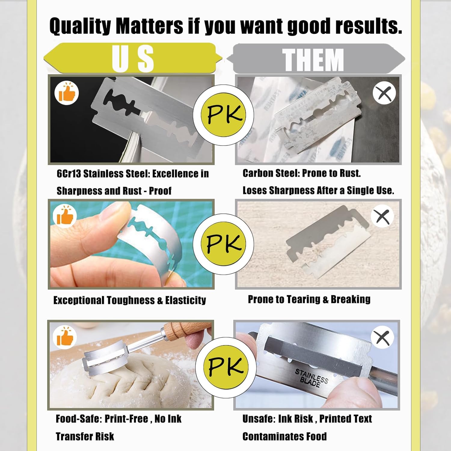 Sharp 6Cr13 Stainless Steel:The blades for sourdough bread scoring are thinner and more flexible than carbon steel, crafted for precise bread scoring.