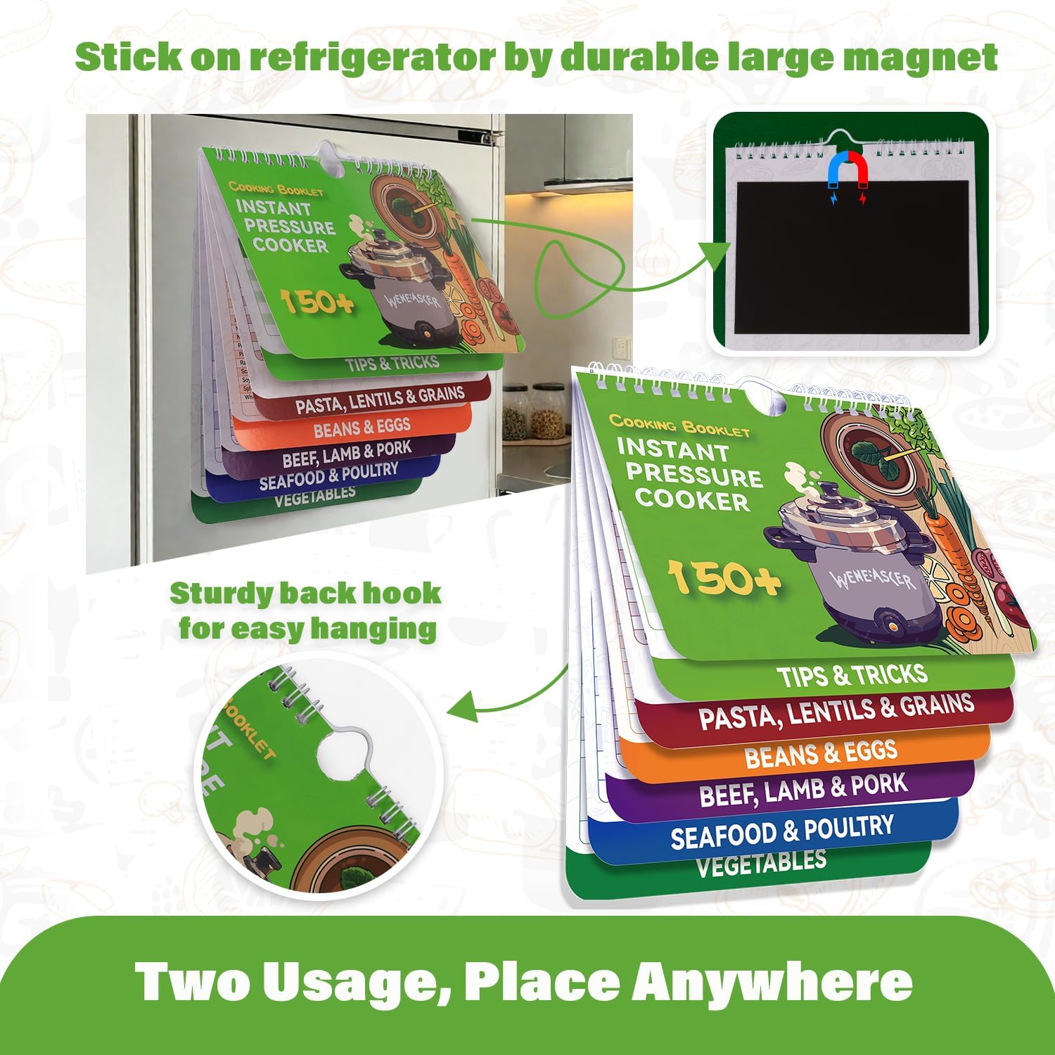 𝐄𝐱𝐩𝐚𝐧𝐝 𝐭𝐨 𝐎𝐯𝐞𝐫 𝟏𝟓𝟎+ 𝐅𝐨𝐨𝐝𝐬: Comprehensive instant pot accessories contains 150+ foods and 6 easy-to-navigate categories. Save time with easy access to cooking info. Efficient design elevate your instapot experience.