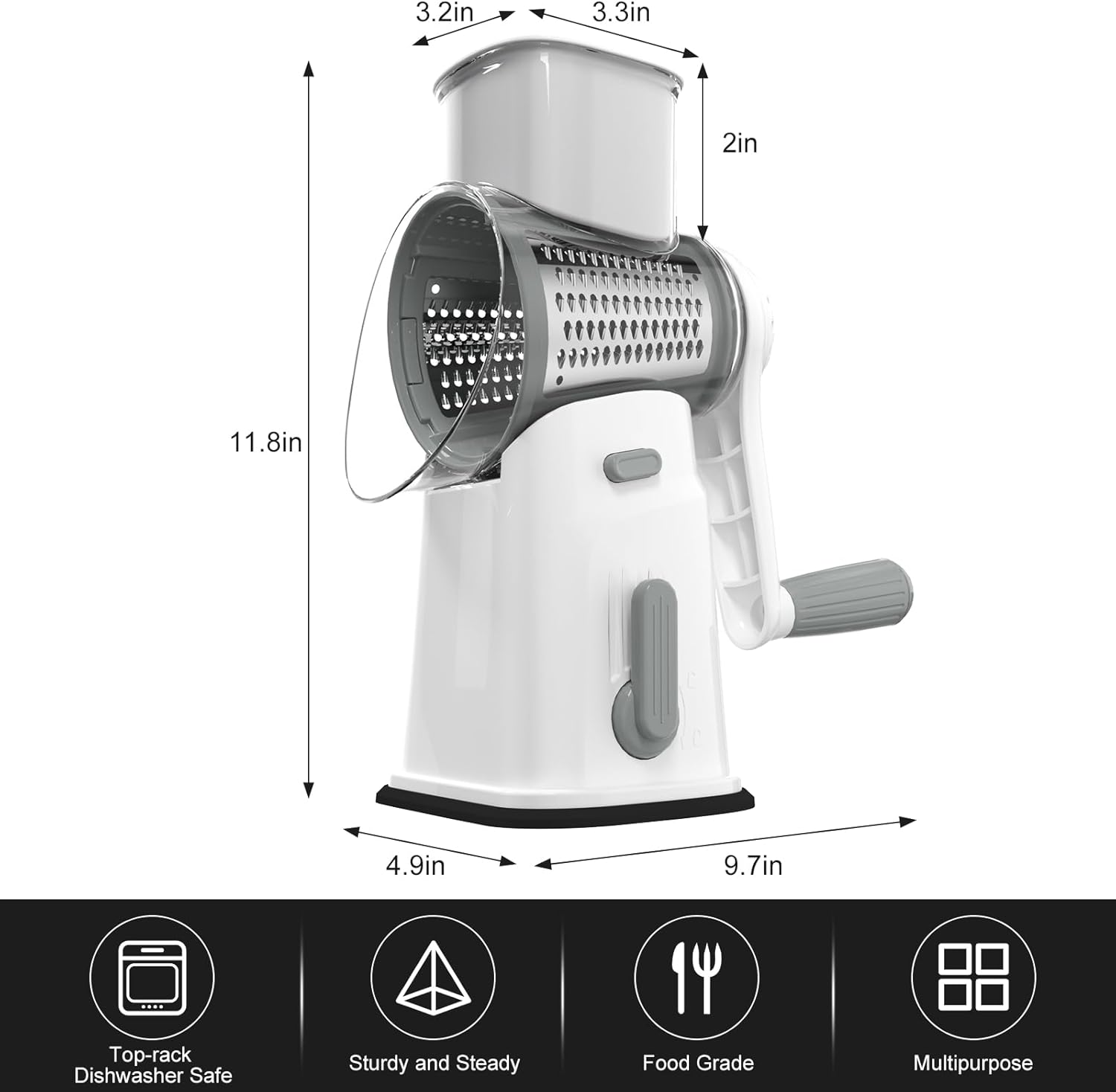 Ourokhome Rotary Cheese Grater Cheese Shredder, Mandoline Vegetable Slicer with 5 Interchangeable Blades and Strong Suction Base for Fruit, Vegetables, Nuts White