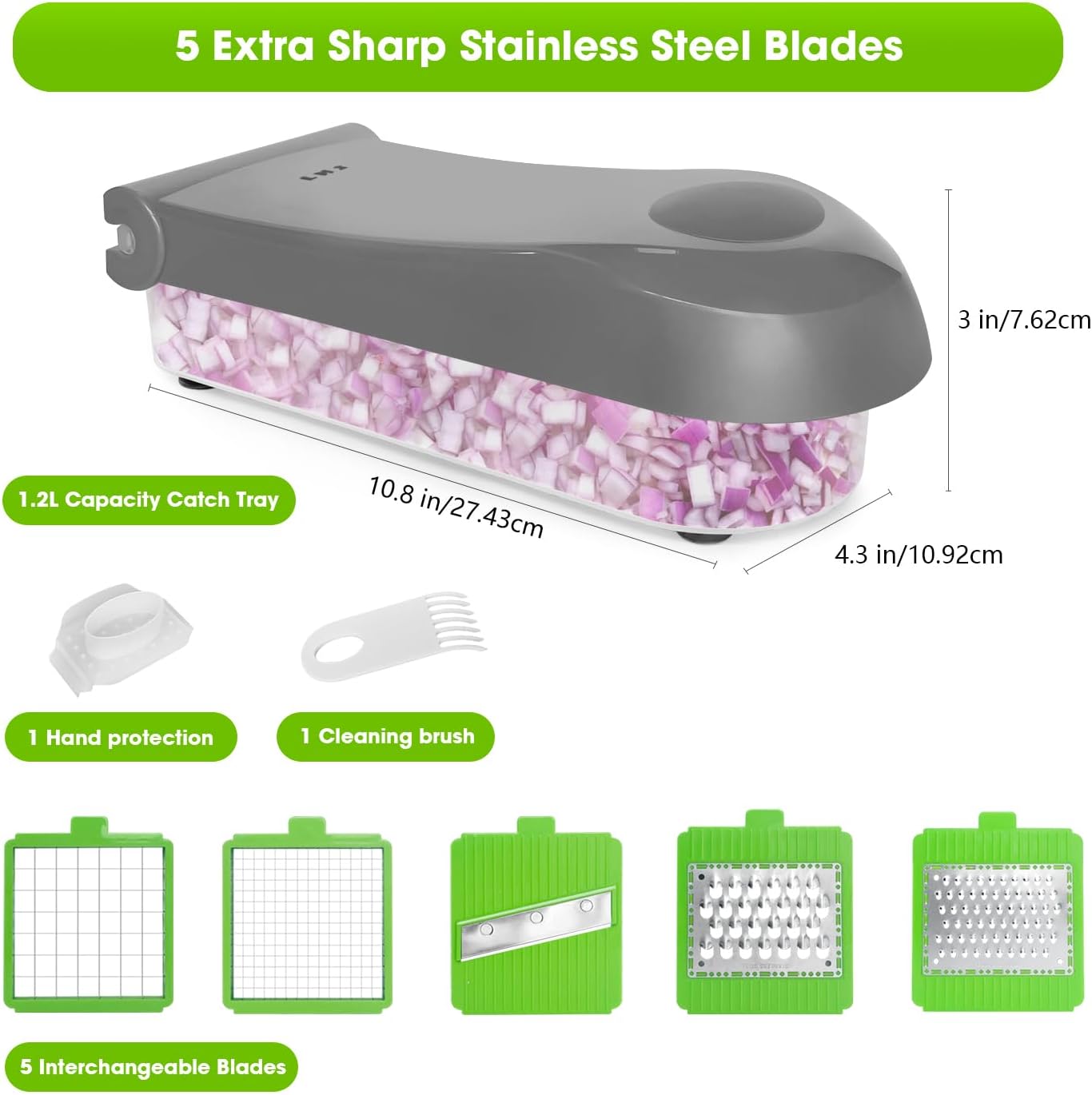 LHS Multifunctional Vegetable Chopper – 7 in 1 Veggie Slicer, Dicer, Cutter for Onions, Potatoes, Salad – Grey Container Included