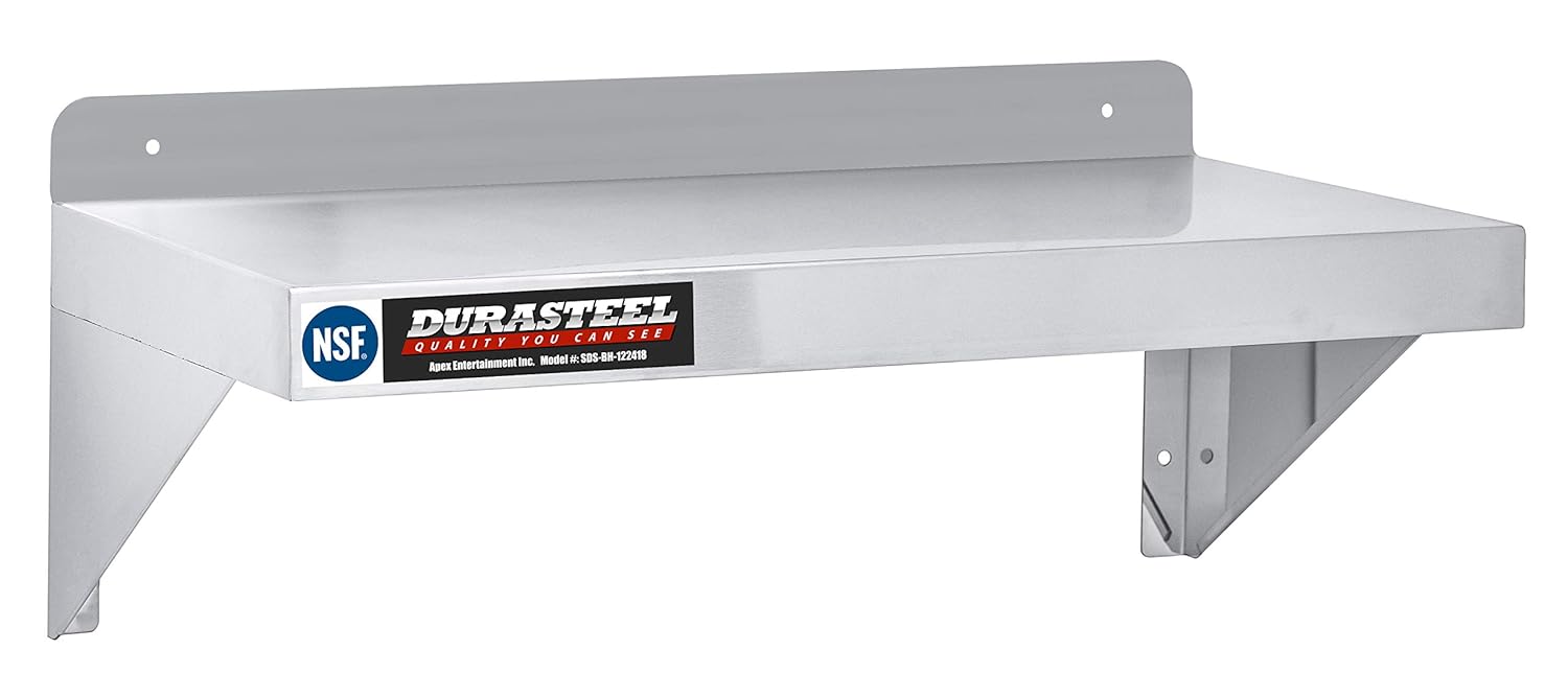 DuraSteel Stainless Steel Wall Shelf – 24″ Wide x 12″ Deep Commercial Grade – NSF Certified – Industrial Appliance Equipment (Restaurant, Bar, Home, Kitchen, Laundry, Garage and Utility Room)