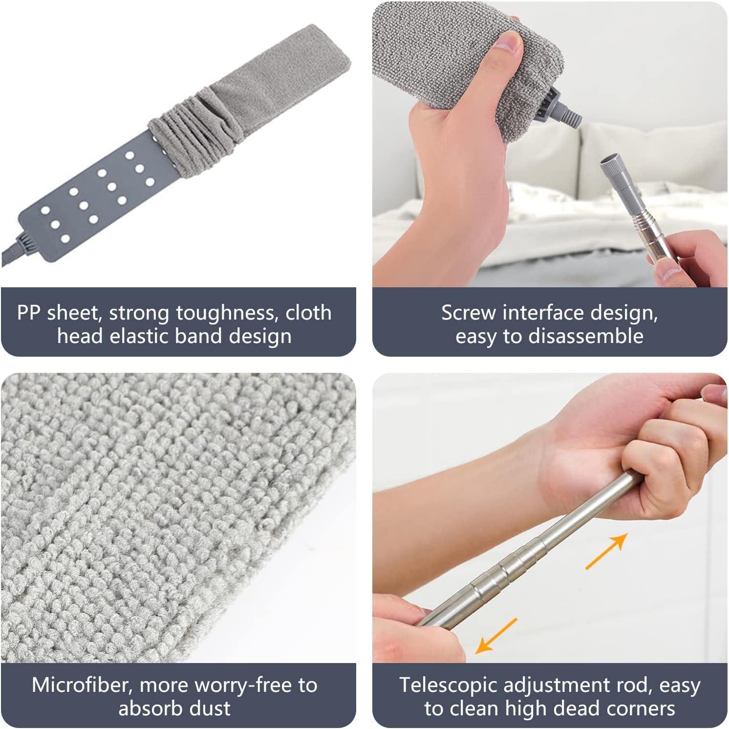 microfiber duster, dusters for cleaning extendable dust gap cleaner with extension pole long damp duster for cleaning ceiling window baseboard Dusters for Cleaning Extendable Features:Premium material: The dust removal board is made of PP material, soft and not easy to break; Equipped with microfiber dust cloth cover, easy to dust and clean; stainless steel telescopic handle, sturdy and durable.Reusable: Dust cloth cover can be reused after hand or machine wash. And the gap cleaning tool comes with a replaceable duster cloth cover, ensuring you are ready for house cleaning anytime.Various occasion: This dust mop is suitable for cleaning higher places such as ceilings, blinds, windows, walls, etc. It is also suitable for the bottom of furniture and any corners such as baseboard, under bed, cabinet, gap between sofa and floor.
