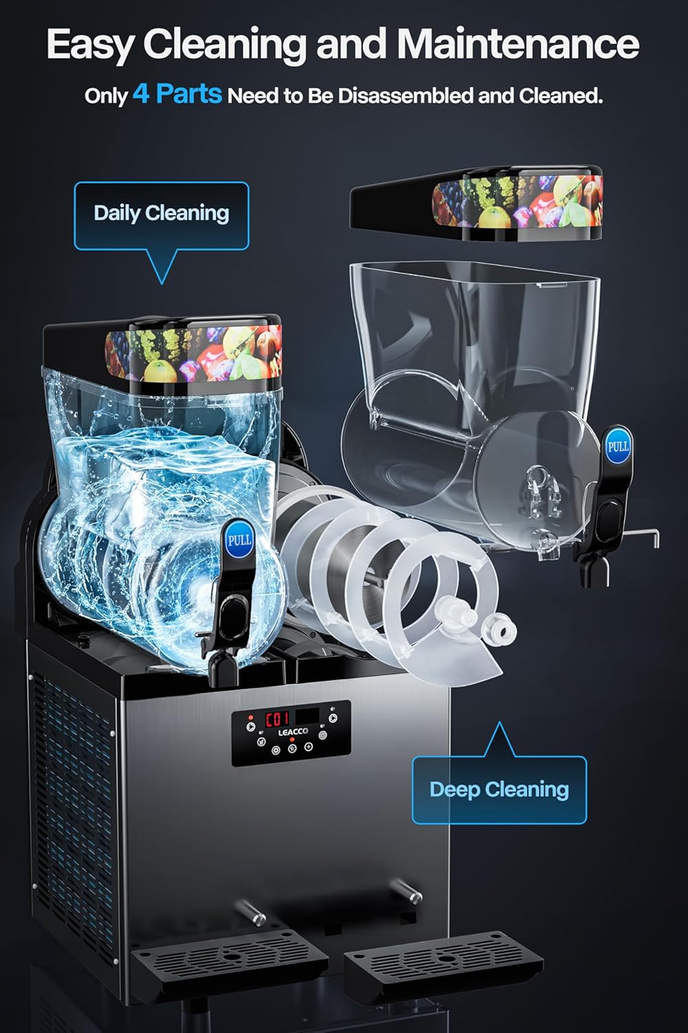 Boost Sales : The built – in LED bowls enhance product visibility, allowing your colorful drinks to stand out and attract more customers. This feature is perfect for commercial establishments looking to boost impulse sales and create a vibrant atmosphere. Let your frozen drinks do the talking and watch your sales soar.