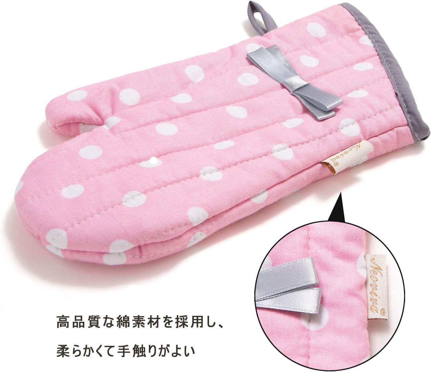 NEOVIVA oven mitts, polka dots pink, matching the kitchen aprons for mama and me, style Wendy, made of classic polka dots cotton twill fabric for the outer and lining, and proper recycled cotton padding to offer a great balance of flexibility and heat resistant for everyday use.