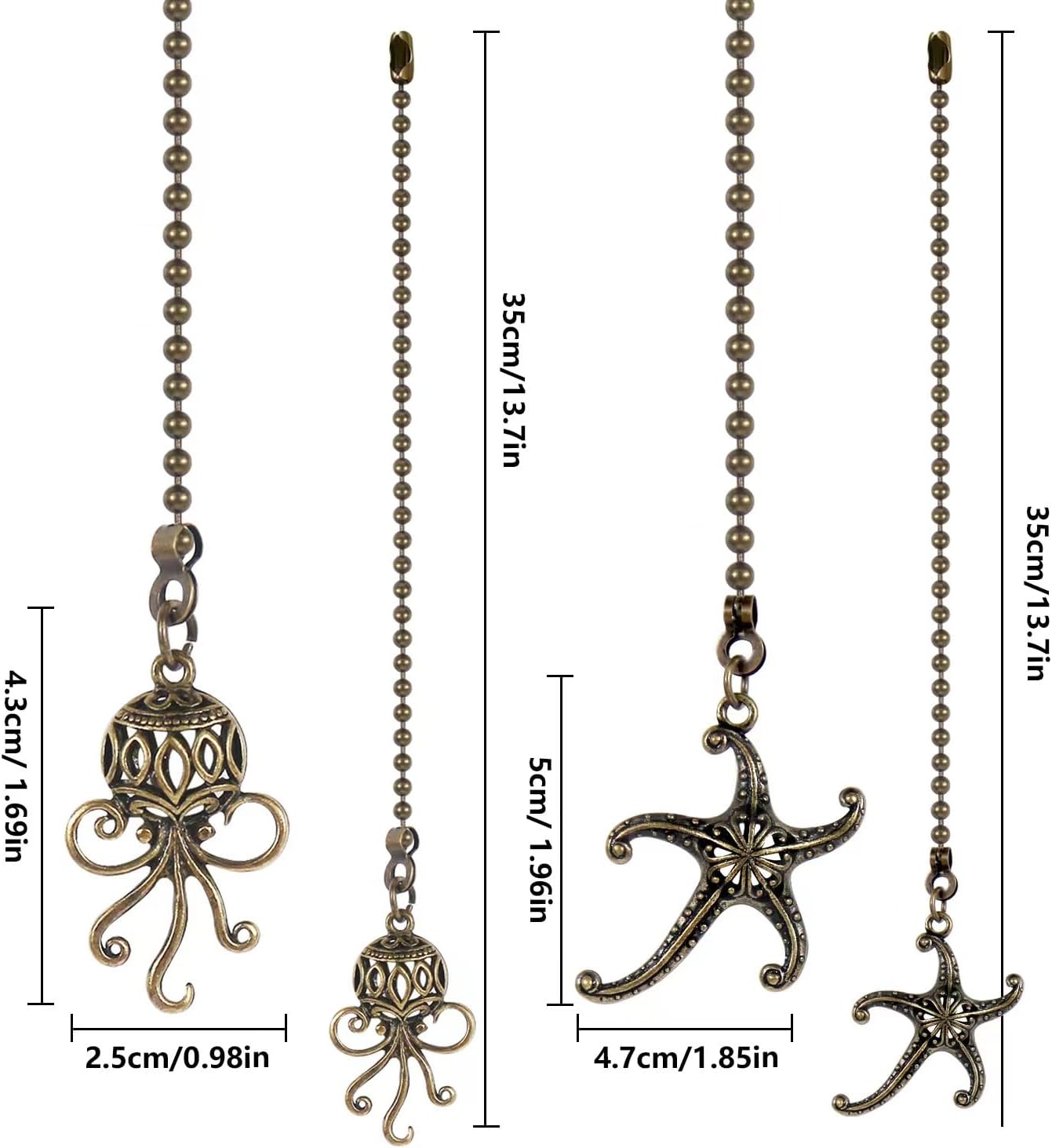 Starfish and Octopus Ceiling Fan Pull Chain, Sea Ocean Theme Pulls Charm Extension Decorative,12in 3mm Diameter Beaded Fan Light Pull Chains Extender Ornaments for Kids Room,Bronze