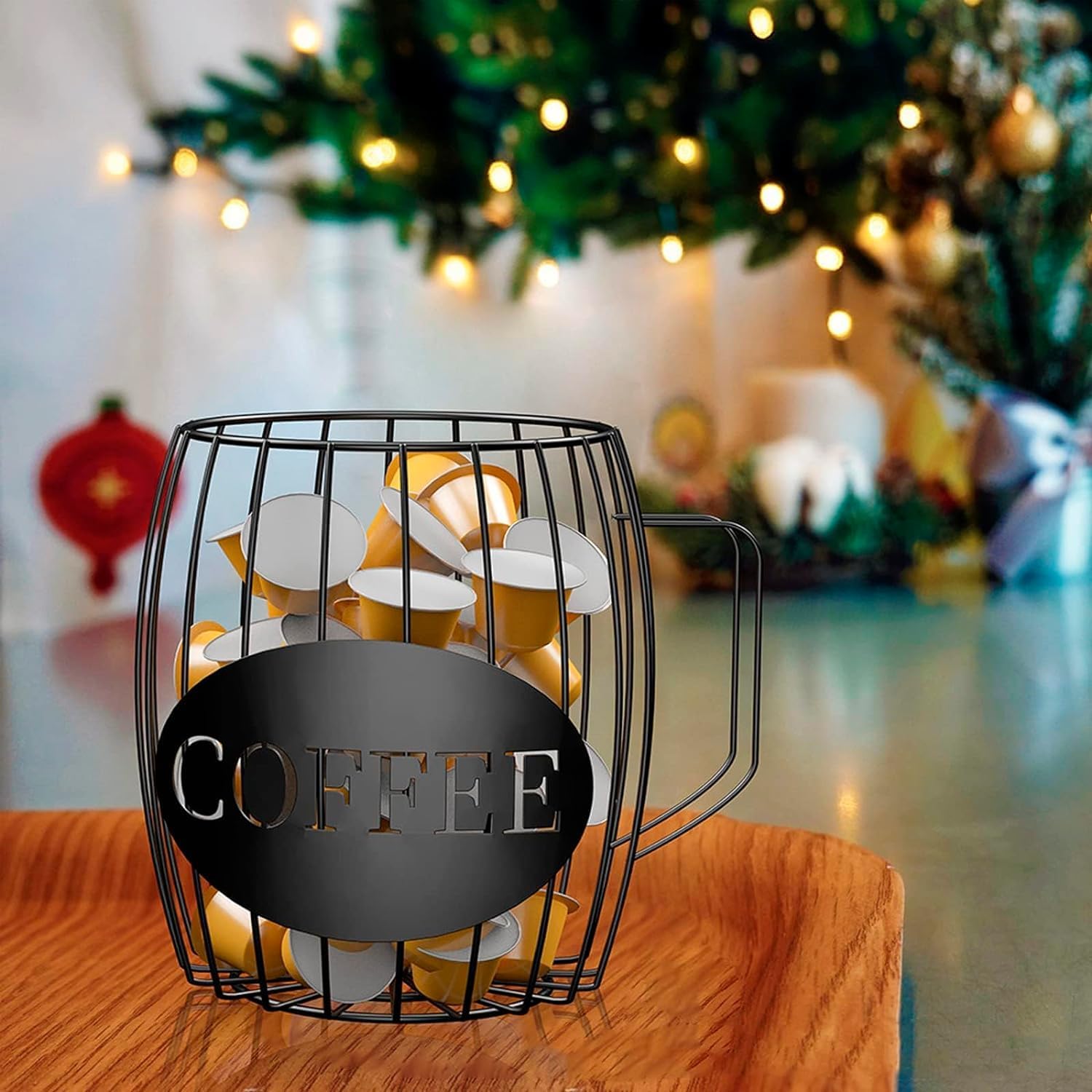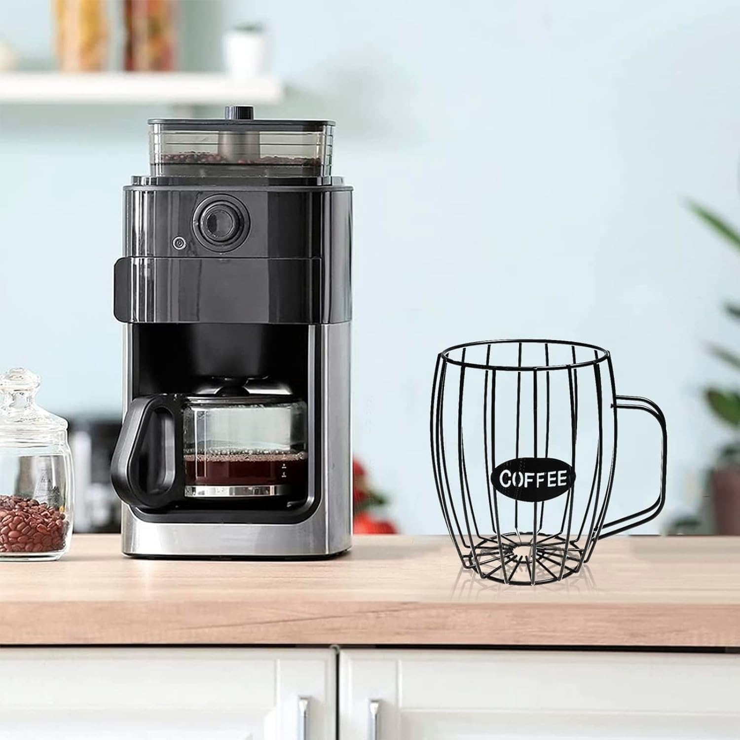 Our metal kcup organizer which have small wire-crossed line design with hollowed coffee letters makes your countertop, coffee bar classic, vogue, effectively holds coffee pods inside the container, even espresso pods won’t collapse.A Thoughtful Housewarming Gift. This coffee pod holder is large capacity with small footprint so that it won’t take up precious counter space. Perfect present for anyone who wants every storage container to match.Besides for K cup and other coffee capsule, this cup basket can also be applied to holding sugar bag, coffee mate, fruit, bread, cookies, drinks, or other items.