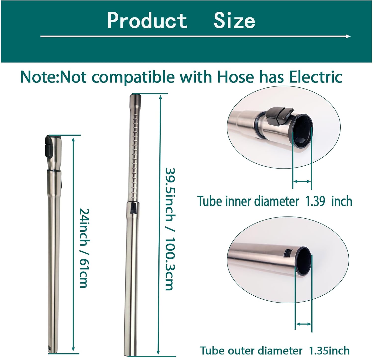 1-3/8″ (35mm) Stainless Steel Vacuum Extension Wand Compatible with Miele C1, C2, C3,S4,S5,S8,S10 etc, Extends Up to 39.5″ Long miele Non Electric Telescope Metal Tube Stainless Wand