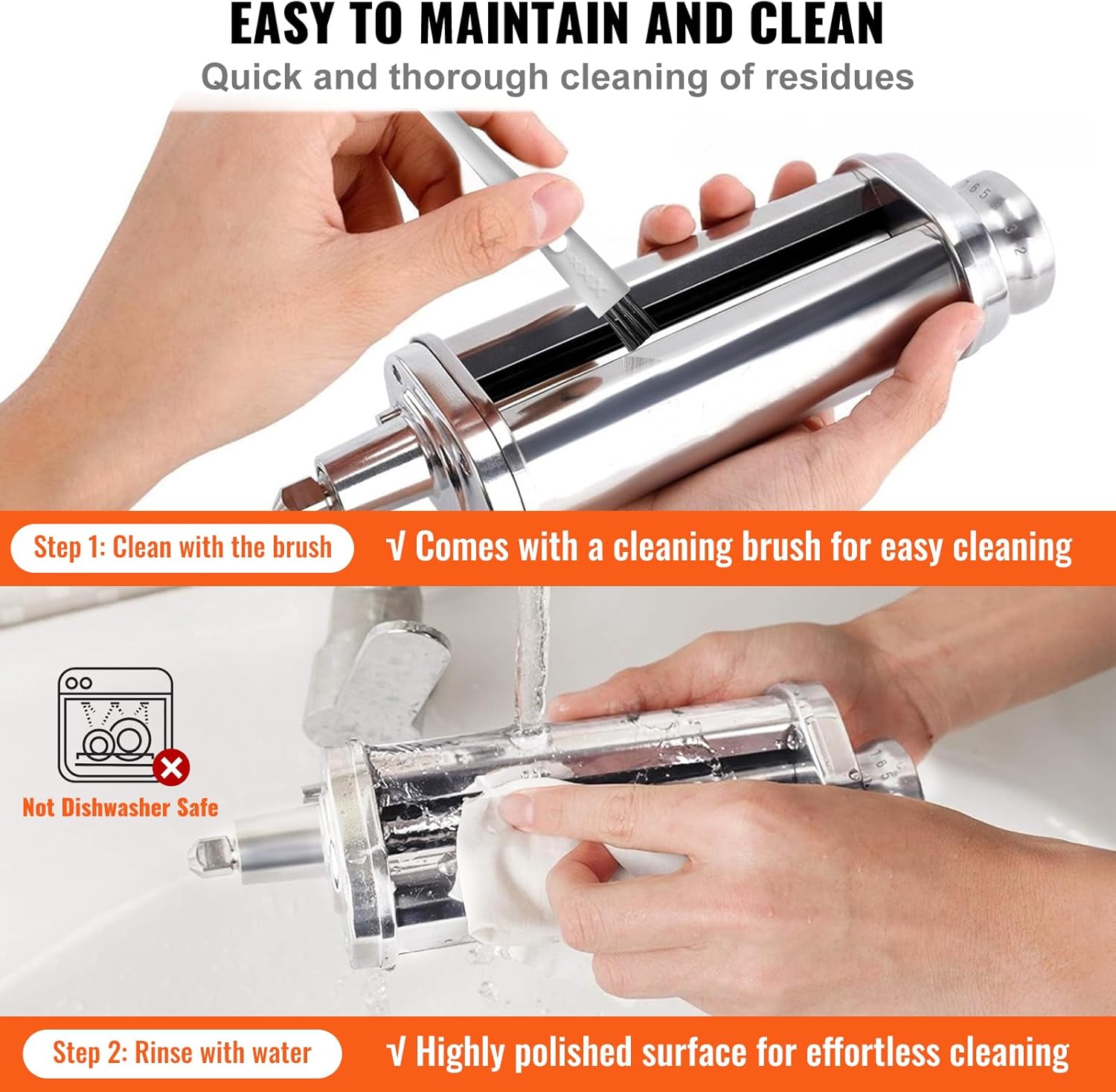 Easy to Use and Clean: This pasta attachment is straightforward in operation. Simply mount it onto a stand mixer, switch it on, and enjoy quicker pasta-making. The included cleaning brush, along with the highly polished stainless steel surface, aids in hassle-free cleaning. However, it’s essential to note that this pasta roller is not dishwasher-friendly.