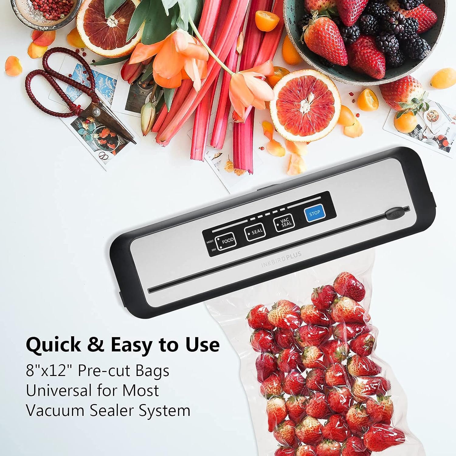 【50PCS 8“×12“ Inch Popular Sealer Bags for Food Storage 】Universal Design Precut Vacuum Sealer Bags is perfect for single portion or small or medium sized cut foods, you can portions food from bulk shopping, or store leftovers for an individual portion. That helps you save not just time and works, but money too.