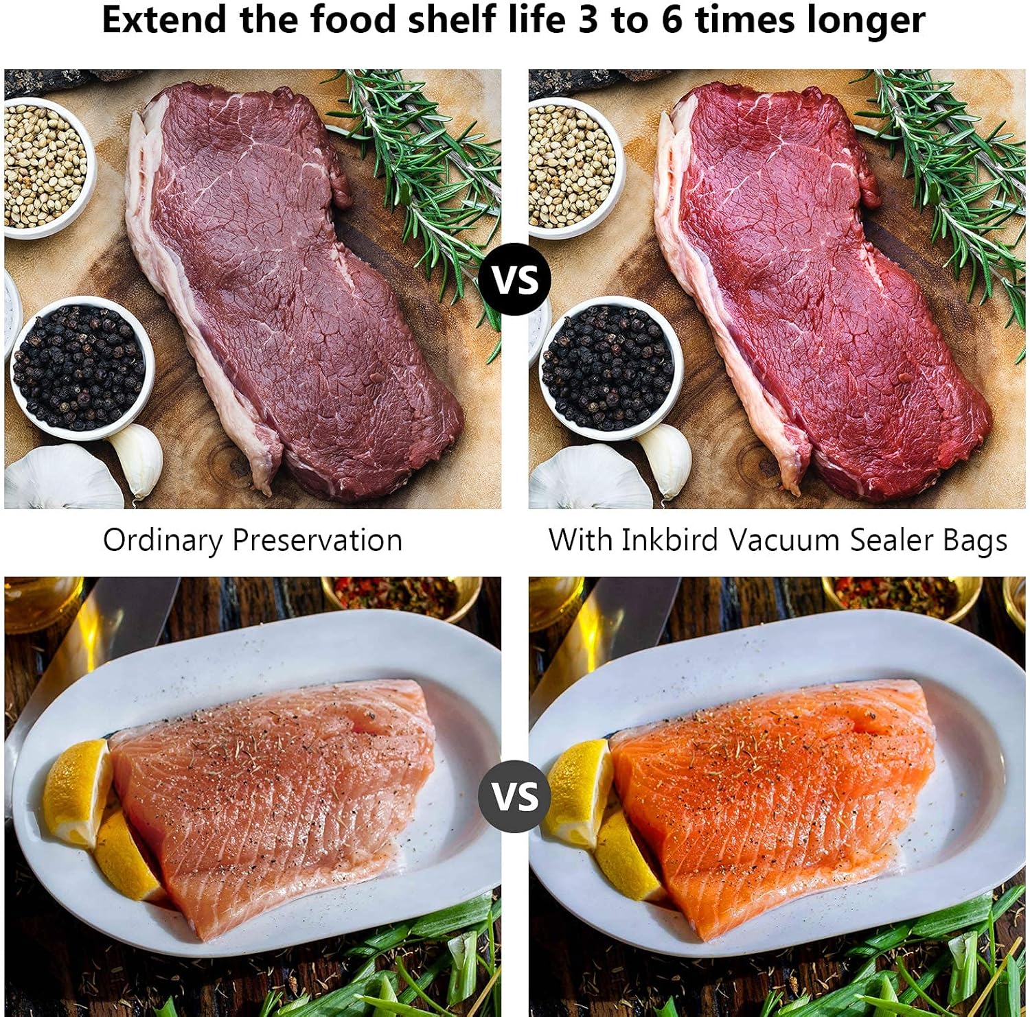 【Smell-Proof and Lock-Nutrition】Inkbird Vacuum packaging food bags can extend 3 to 6 times longer of shelf life,lock freshness,flavor and nutrition in your food. Increase storage time and nutritional value. our product provide with best value.