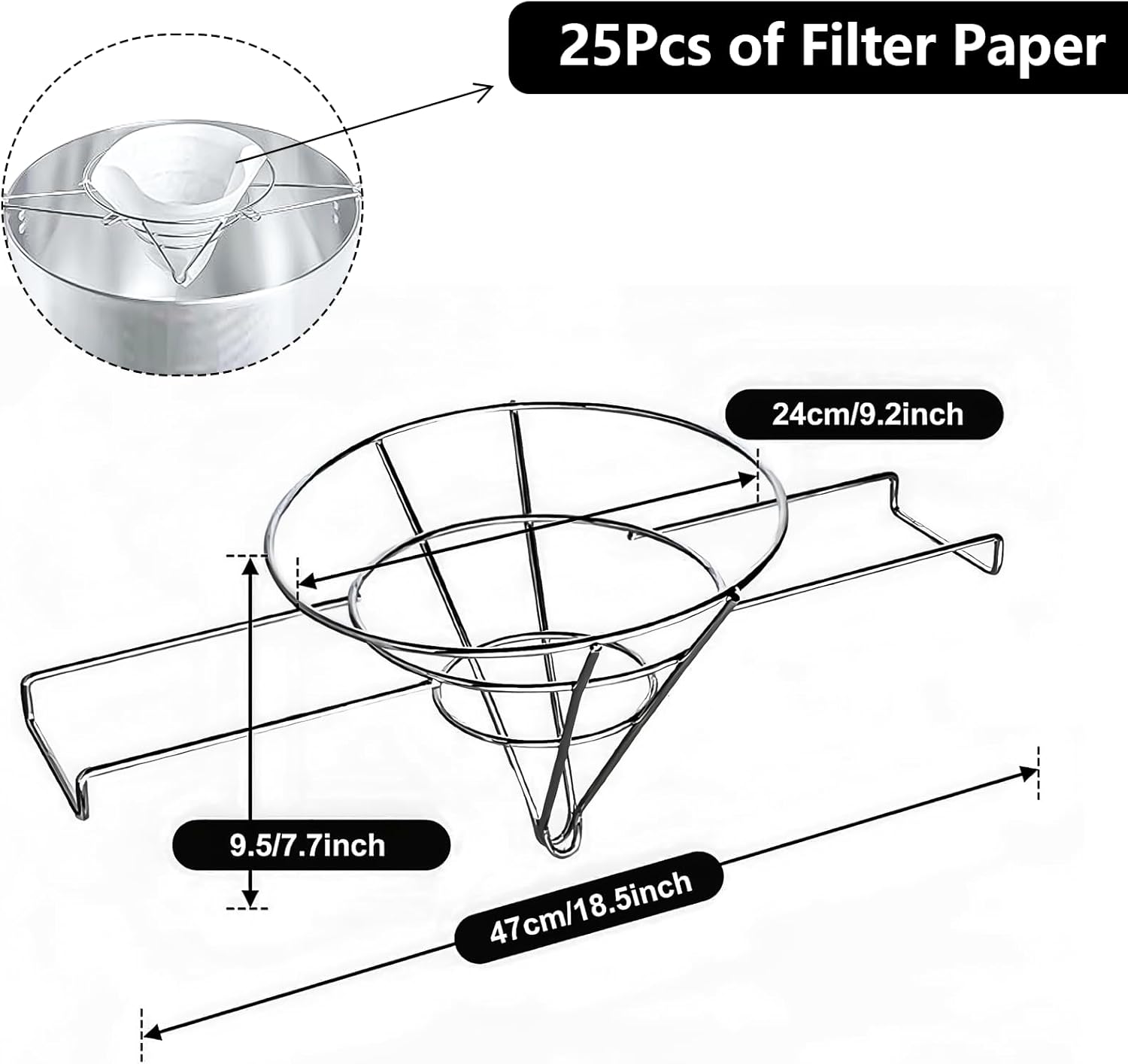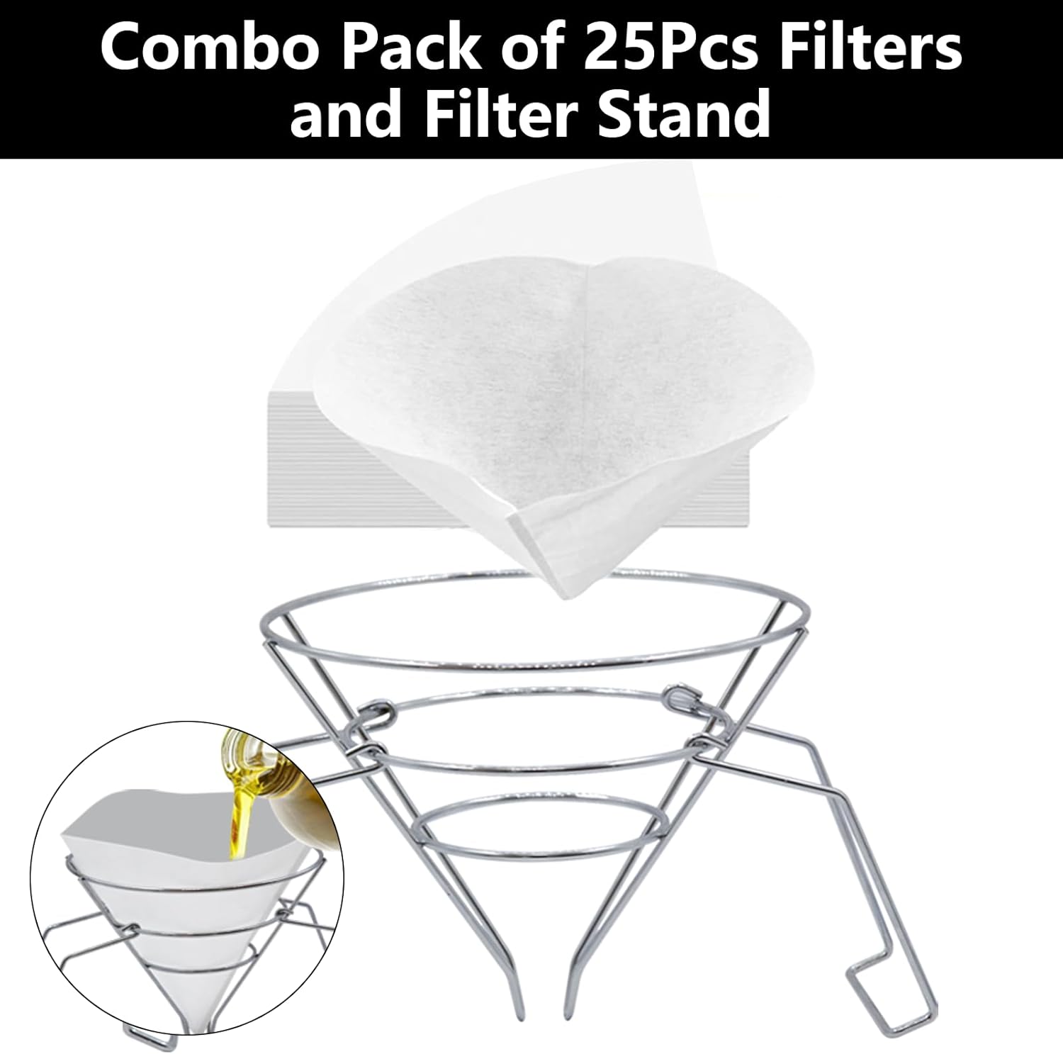 10″ Oil Fryer Filters & Oil Strainer Stand | Maple Syrup Filter Holder with 25 Pcs Filter Paper – Commercial Cone Filter for Kitchens, Restaurants, Food Trucks