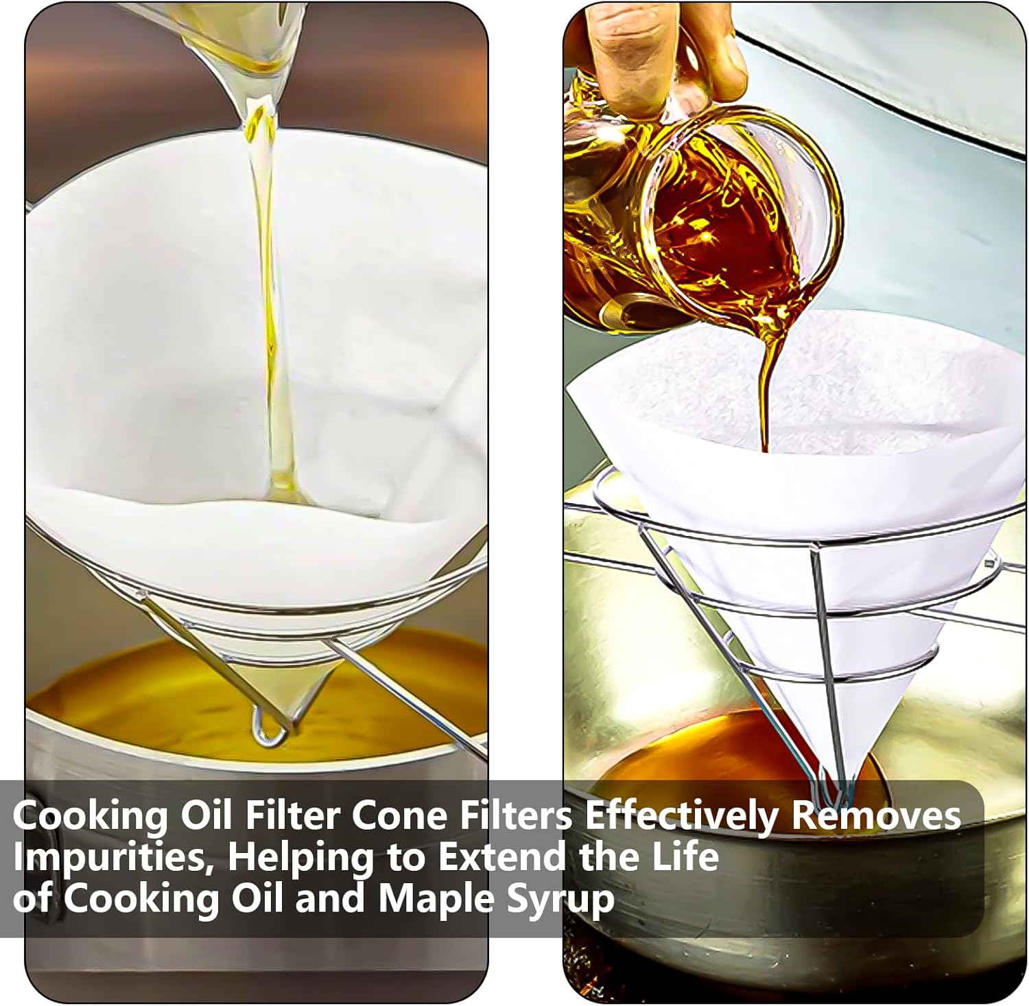 【Versatile Filtering for Oils & Syrups】: Perfect for filtering a wide variety of oils, including frying oils, coconut oil, and bacon grease, as well as for Maple Syrup Filters Set. The Filter Cone Holders provide a versatile solution to maintain the purity and quality of your ingredients in both commercial and home kitchens.