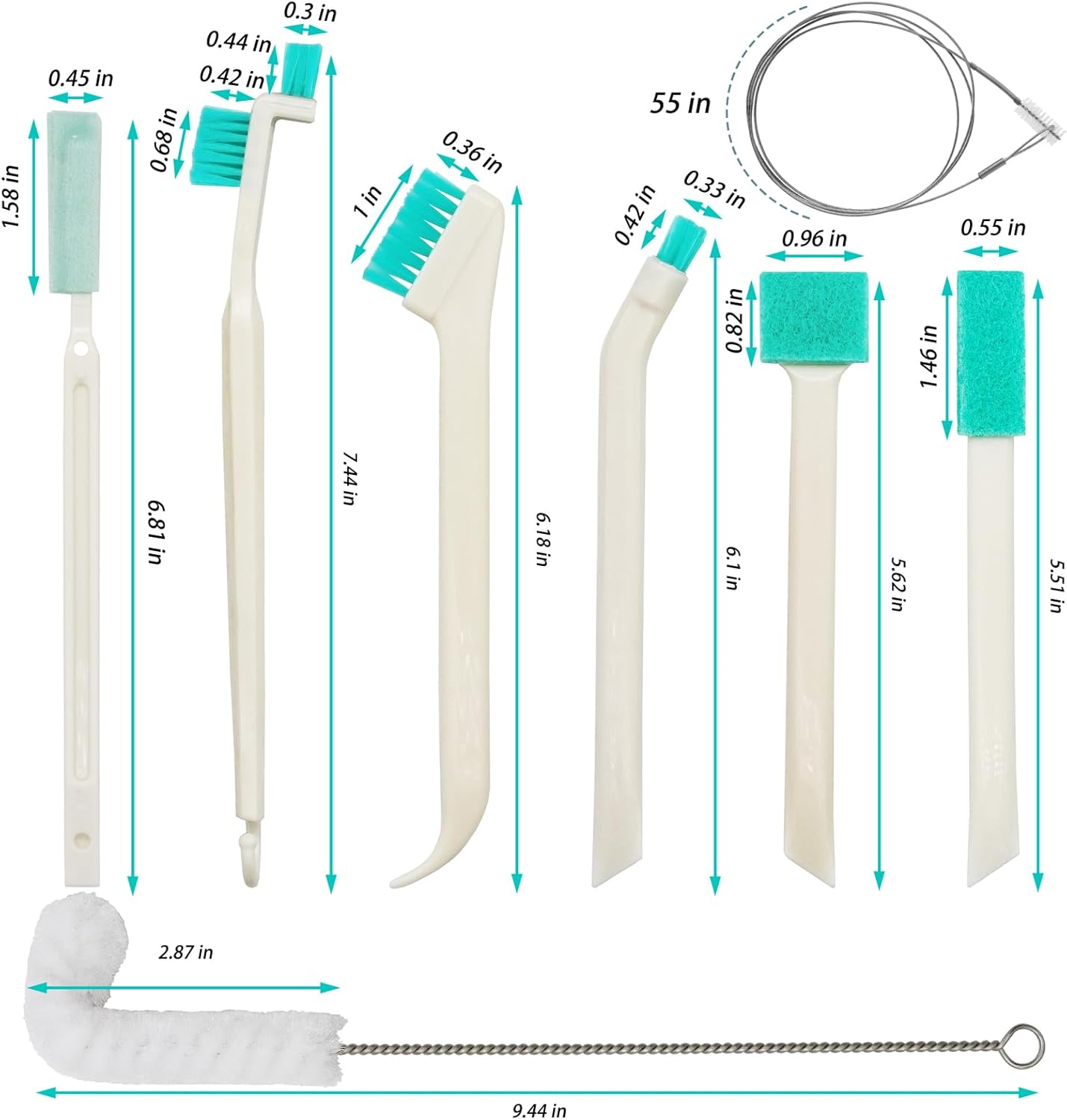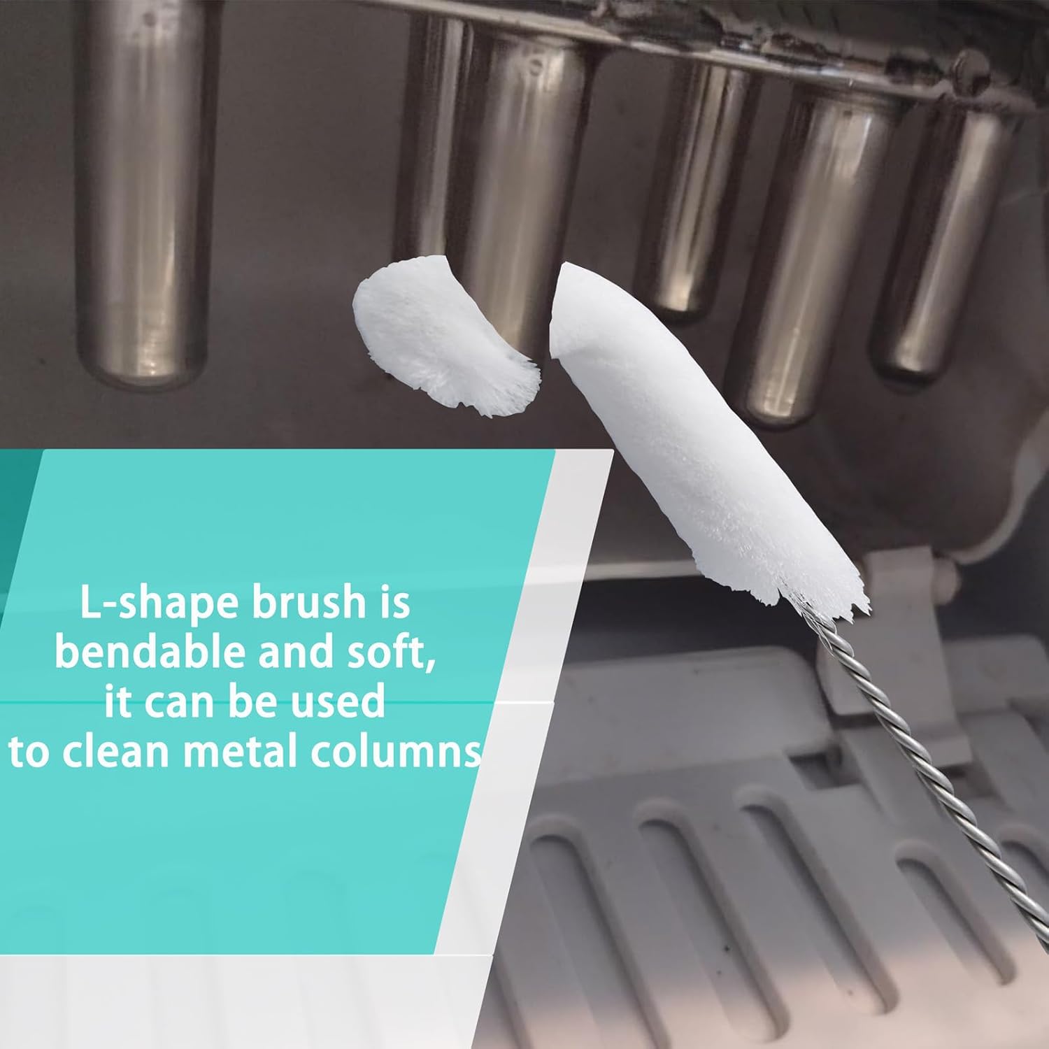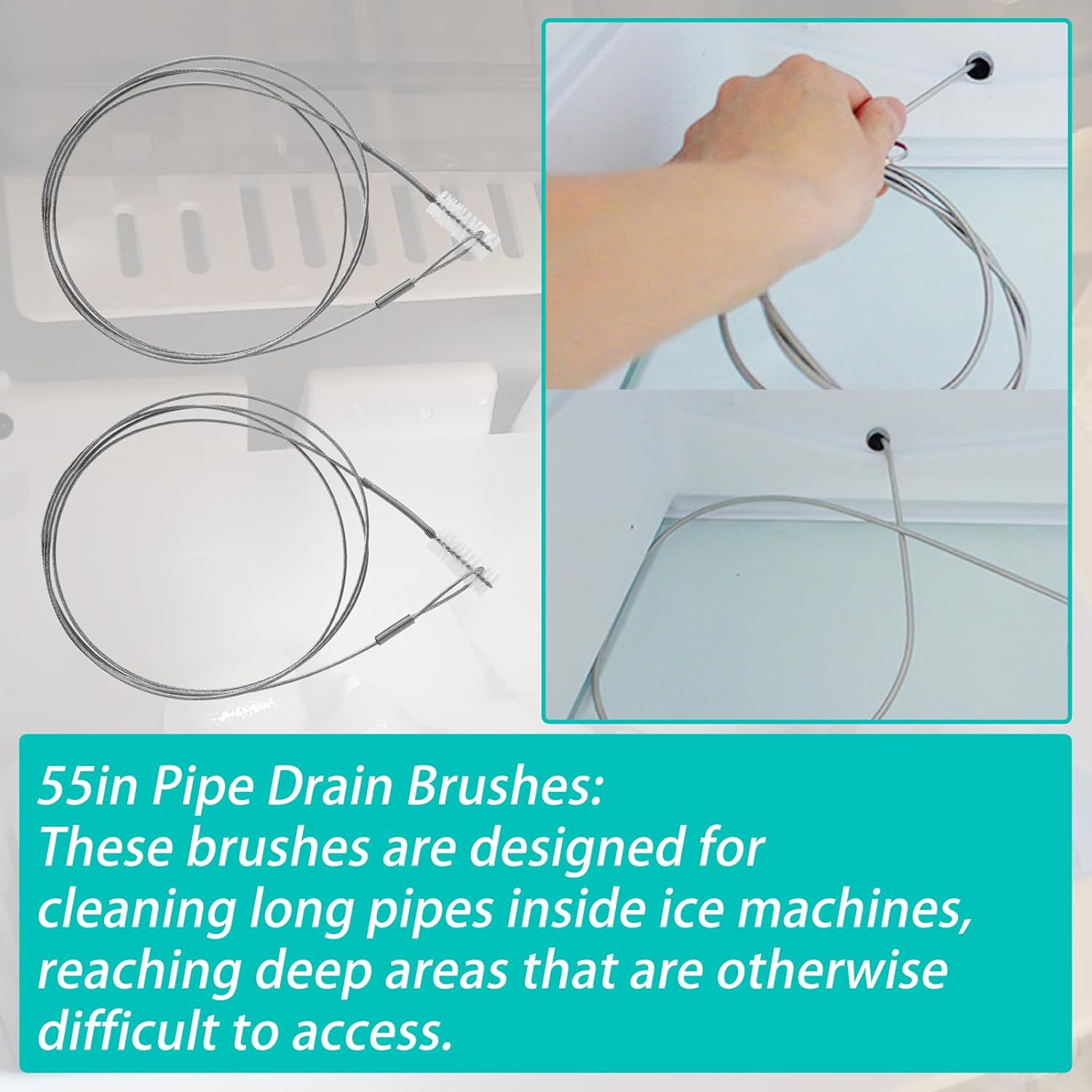 55in Pipe Drain Brushes& L-Shape Brush: These brushes are designed for cleaning long pipes inside ice machines, reaching deep areas that are otherwise difficult to access. The extra length makes it easy to clean larger sections with ease. L-shape brush is bendable, it can be used to clean metal columns to keep them clean