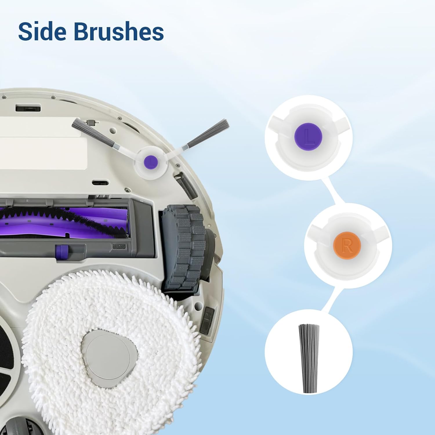 【Warm Tips】It is recommended to replace the brushes and filters or mop pads every 2 to 3 months. Especially if you have pets. The multi-sided rubber nylon roller brush should be replaced every 6 months, and regular cleaning of replacement parts will improve suction and performance, extending the life of your robot vacuum. In order to achieve the best cleaning effect.