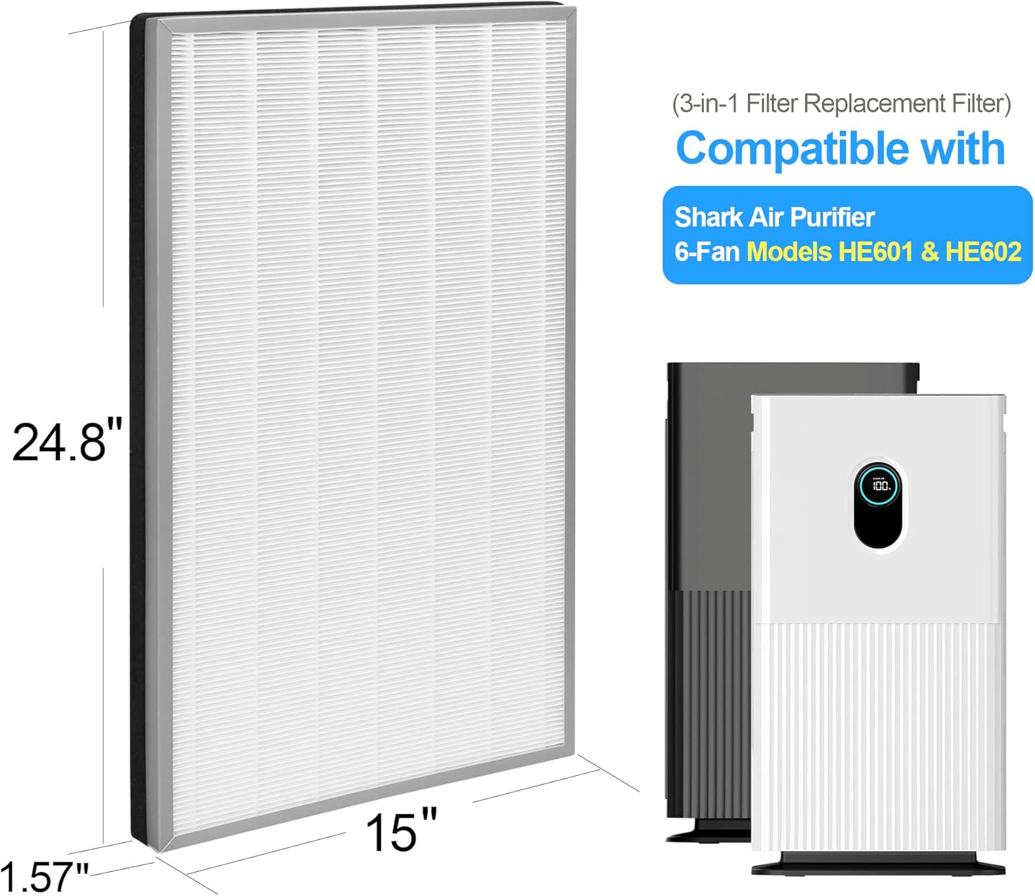 2 Pack Upgraded 3-in-1 Carbon HEPA HE601 Replacement Filter for Shark Air Cleaner Purifier 6 (HE601 & HE602) Part # HE6FKPET