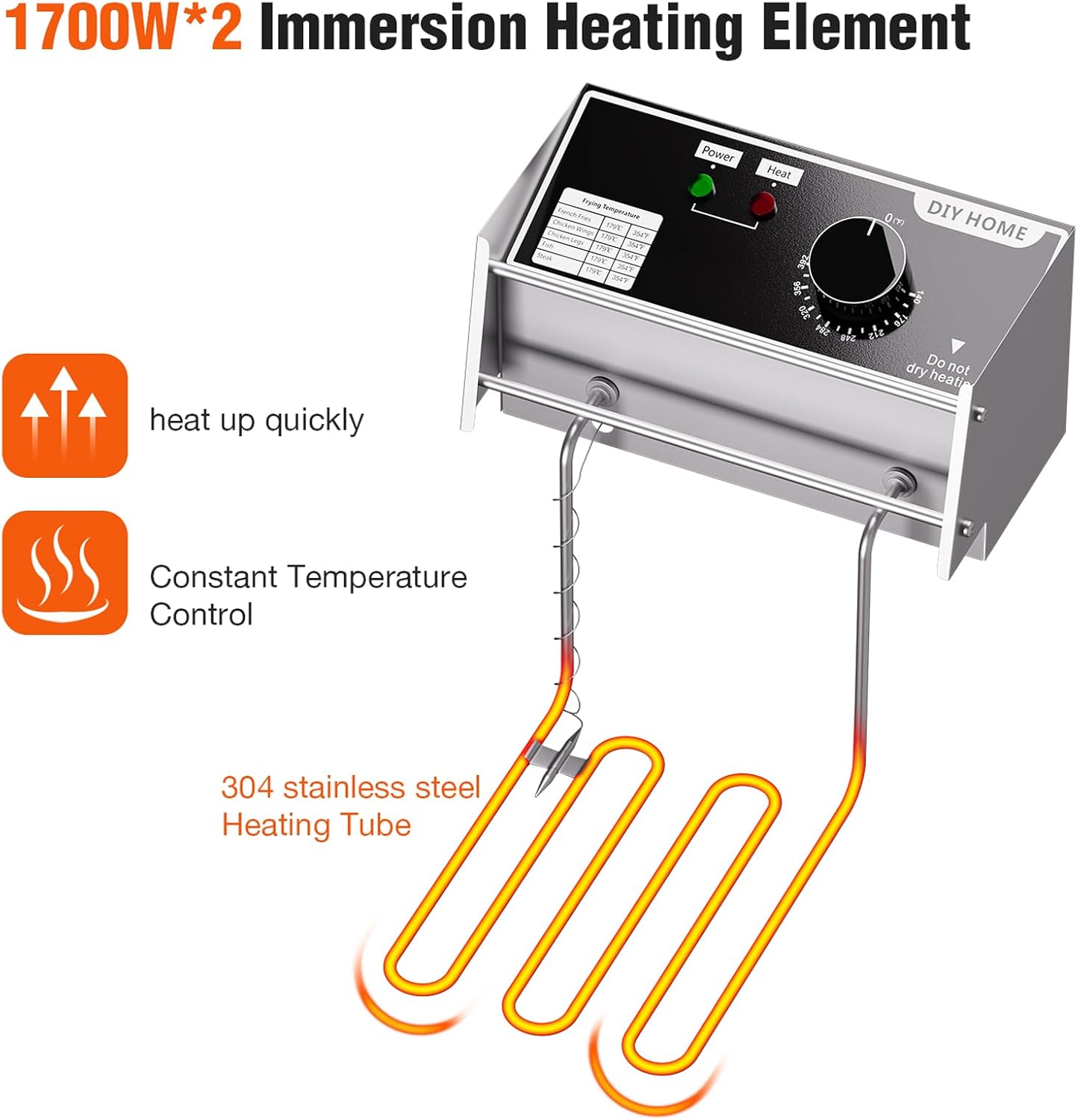 UPDATED VERSION – Add handles on both sides of the oil tank for easy pouring in and off oil; The scales of the maximum and minimum refueling amount are added on the inside of the oil tank container; heavy duty thickened oil tank; 304 stainless steel heating tube effectively balances oil temperatures