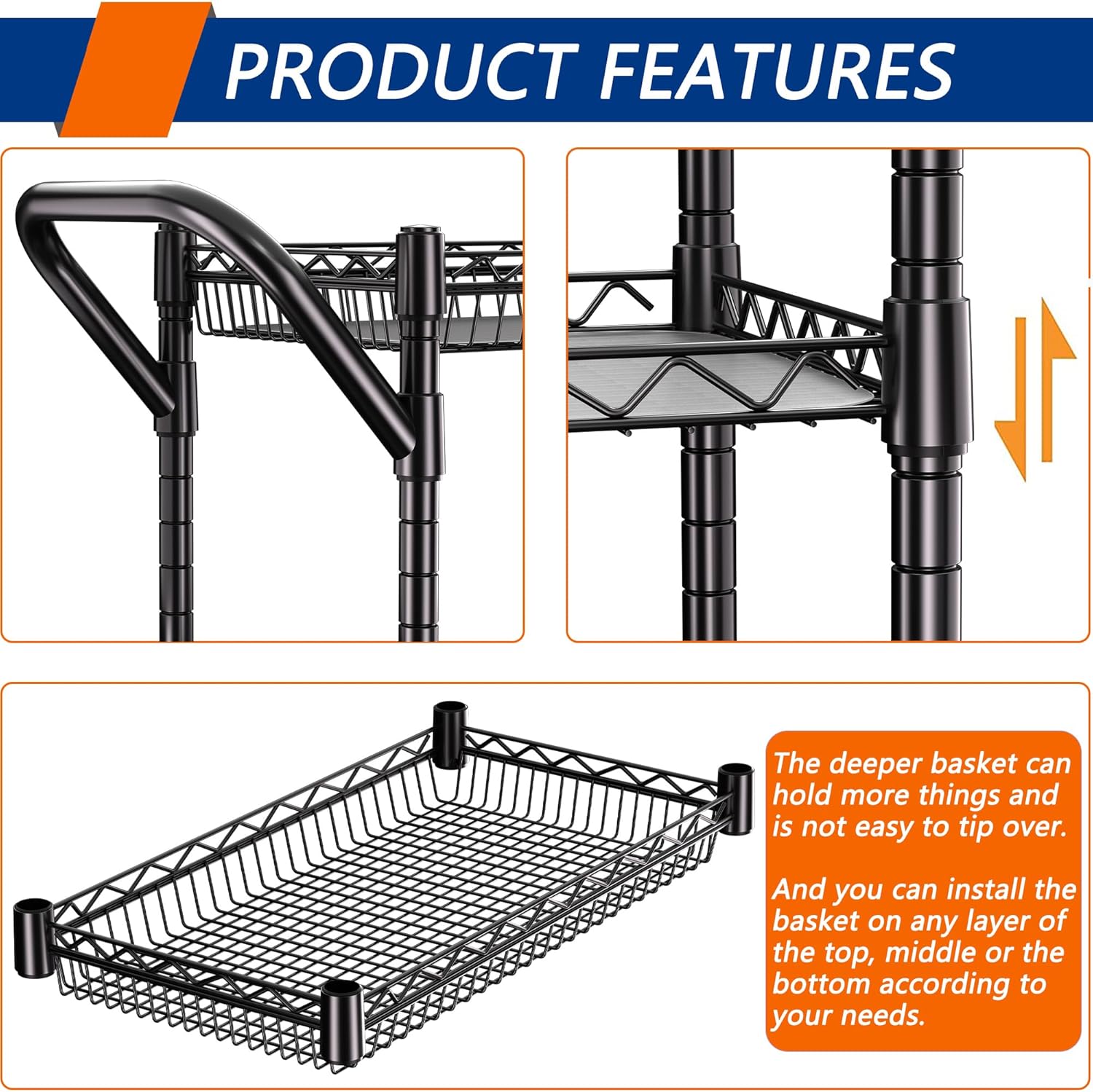 STURDY AND DURABLE Cart: Rolling Utility Cart surface has a special coating that prevents water ingress, rust or corrosion. There is no problem placing it in the kitchen or bathroom. The unit provides convenient storage options for any room in your home.