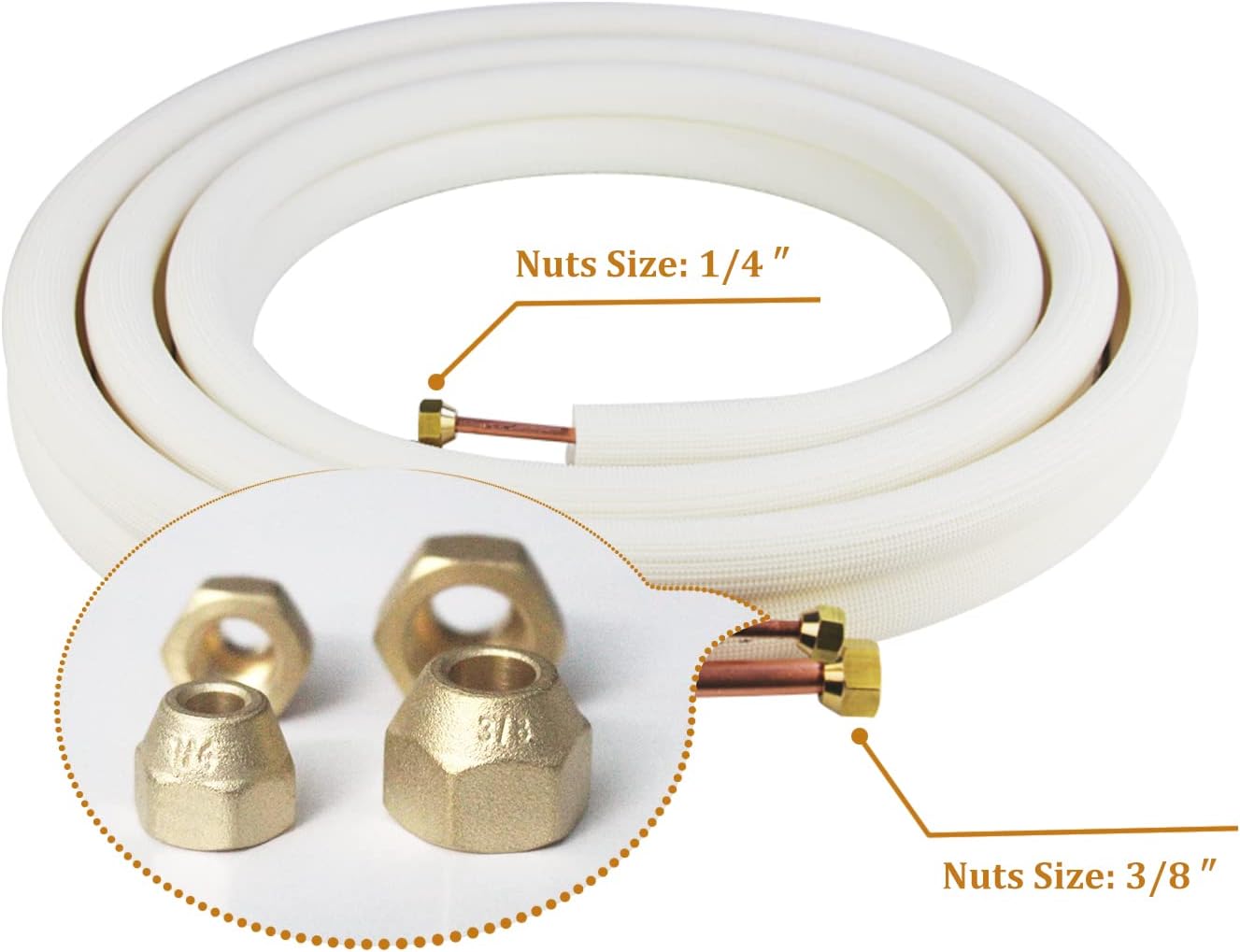 33 Ft Mini Split Line Set,Air Conditioning Copper Tubing Pipe Extension,1/4″ & 3/8″ 3/8″ PE Thickened for AC and Heating Equipment Insulated with Nuts. (1/4+3/8)