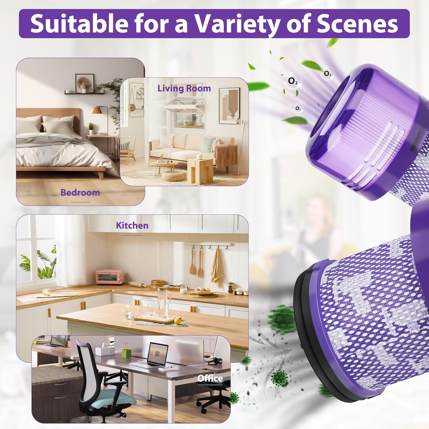 Not Compatible – These filter replacements are NOT compatible with Dyson V11 Outsize, V15 Outsize, Outsize Vacuum, Outsize+/Plus, Outsize Absolute+, Gen5 Detect, Gen5 Outsize, SV19 Omni-glide +, V12 Slim, SV16, Micro 1.5KG, Cyclone V10 Animal, V10 Absolute, V10 Cyclone, V10 Total Clean, SV12 vacuums. Please confirm your accessories model and size before purchase! Please feel free to contact us if you have any question.