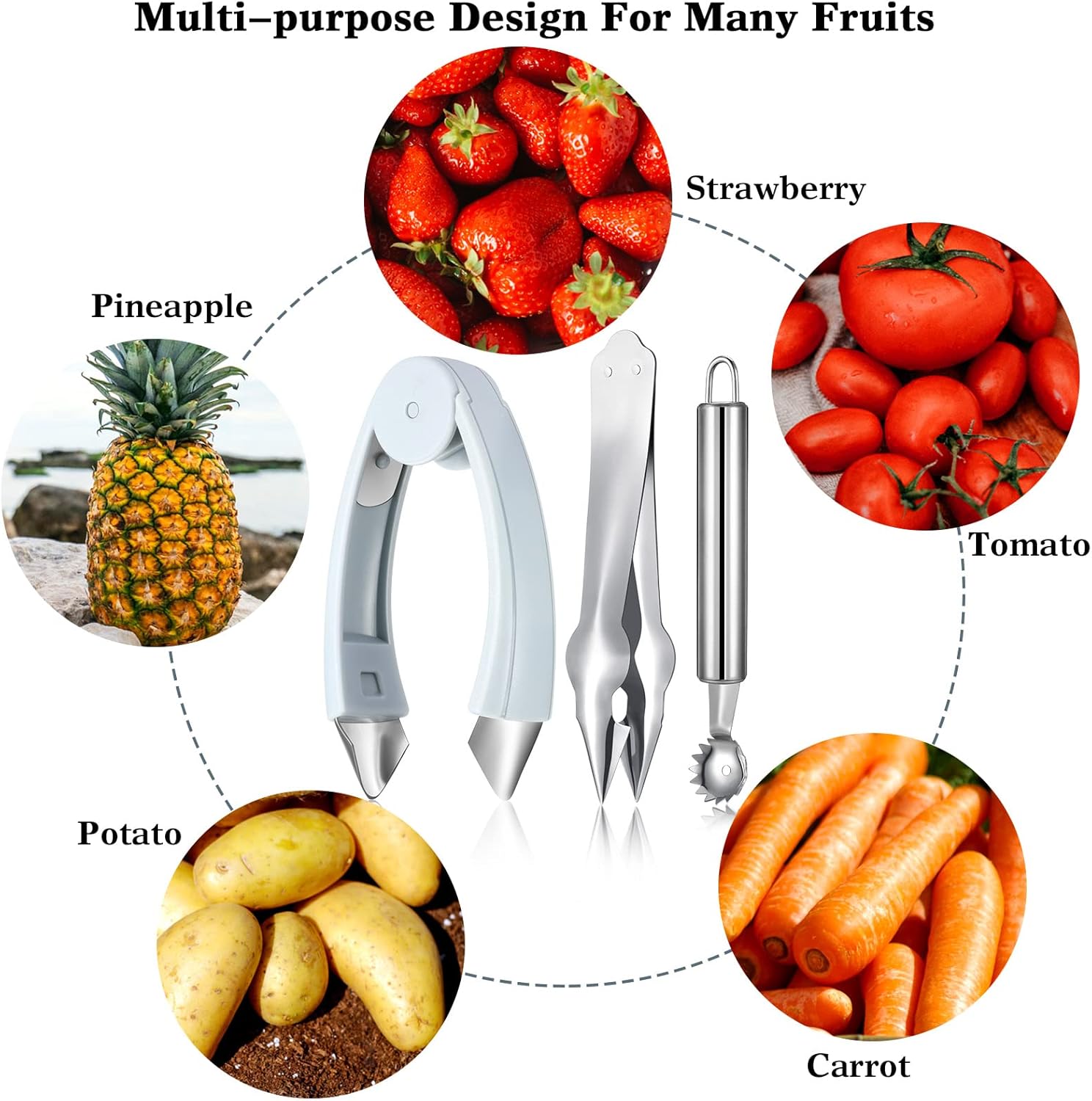 Applications: these stem remover tools are practical appliance for home kitchen, mainly applied for chefs and those who need to process tomatoes or canned strawberries, remove the stem effectively and cleanly, also suitable for a variety of soft fruits and vegetables, such as pineapples, tomatoes and more