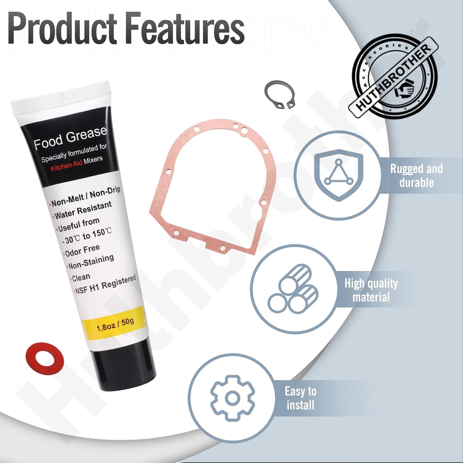 4162324 Kitchen Mixer Transmission Case Gasket, for KitchenAid Mixers K45, K5, KSM90, KSM150, With 1.8 Oz 2 x Food Grade Grease – NSF-H1 Accredited.