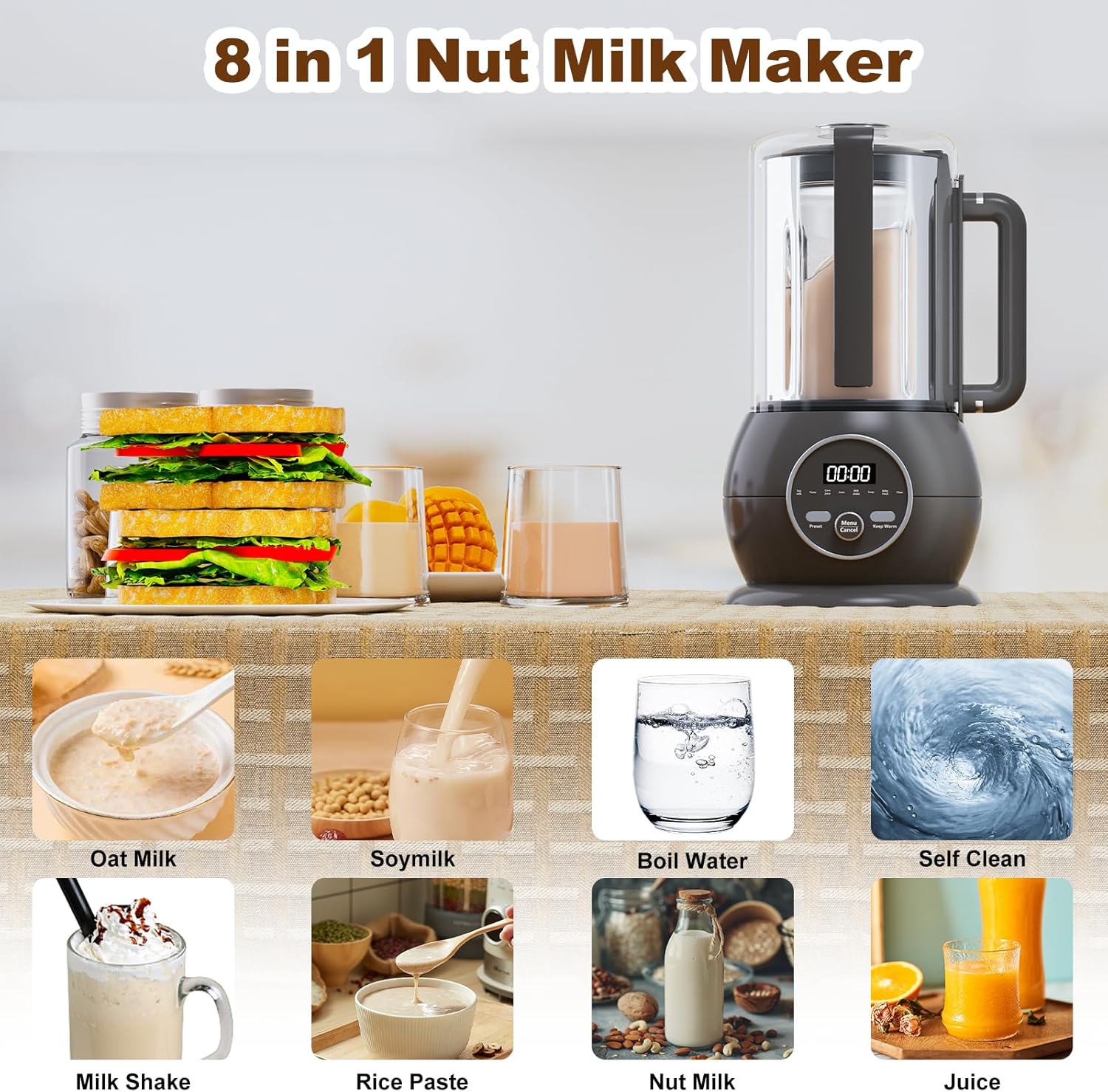 50oz Nut Milk Maker Machine, 8 in 1 Soy Milk Maker Machine with Delay Start, Almond Milk, Homemade Soy Milk, Plant Based Milks, Oat Milk, Coconut, Juice, Keep Warm (Grey)