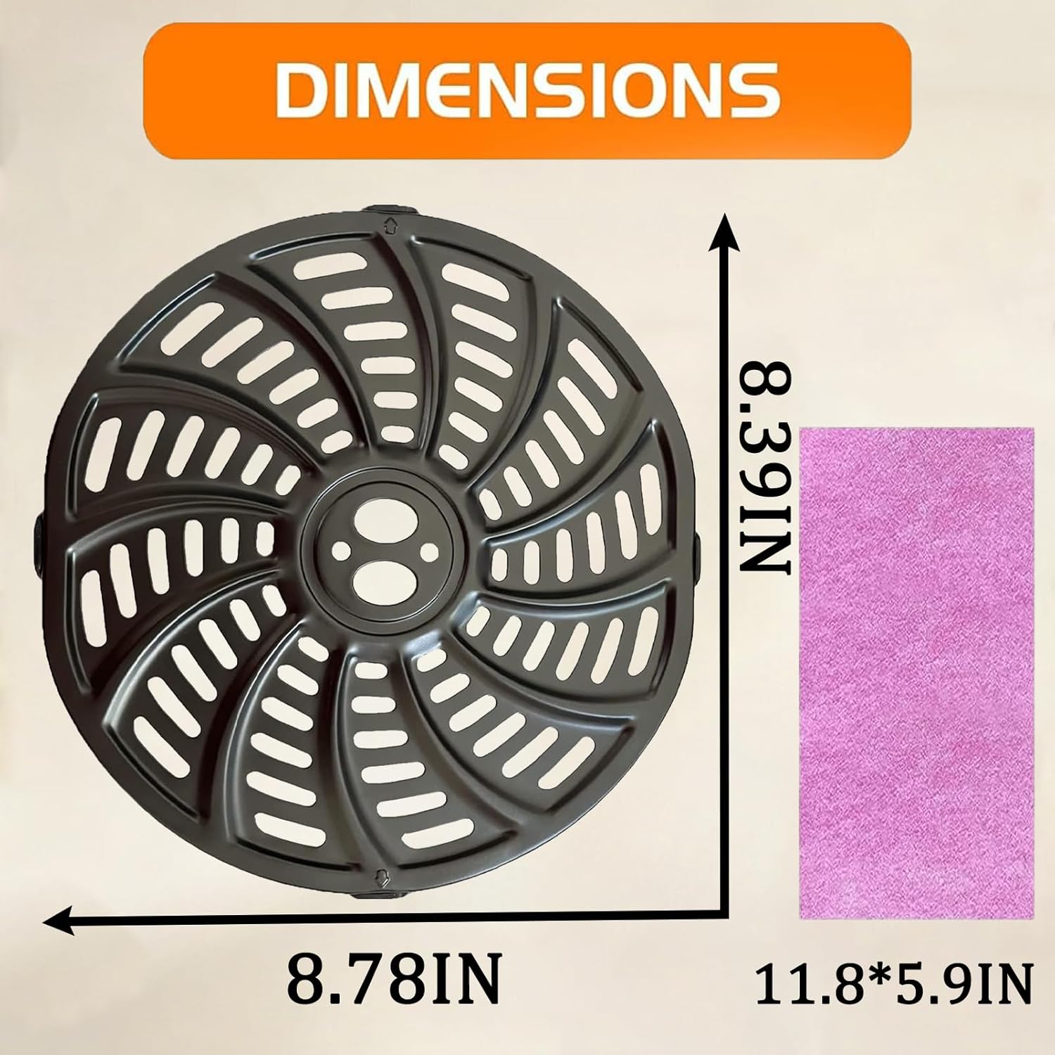 What You Can Get: 1×Air fryer replacement crisper tray, Gifts: 1×Kitchen non-stick cleaning cloth, 4×Air fryer rubber tabs.