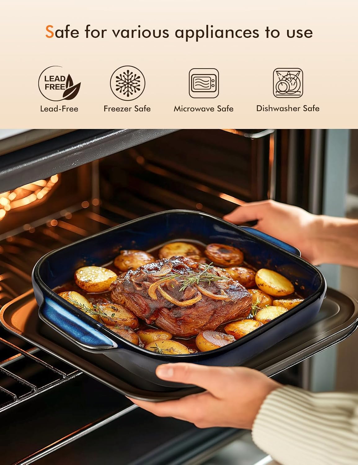 Professional-Grade Ceramic: Made from high-quality ceramic, this lasagna pan is highly durable and can withstand high temperatures up to 500°F. This baking dish is safe for use in ovens, microwaves, refrigerators, and dishwashers. The ceramic material of this baking dish offers excellent heat retention, keeping your food warm for longer periods and ensuring even cooking.