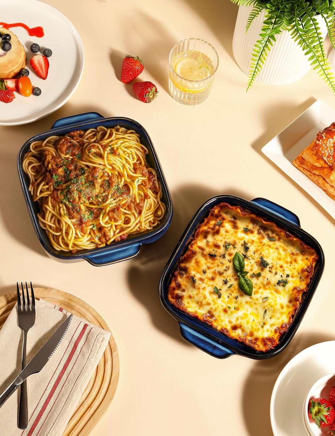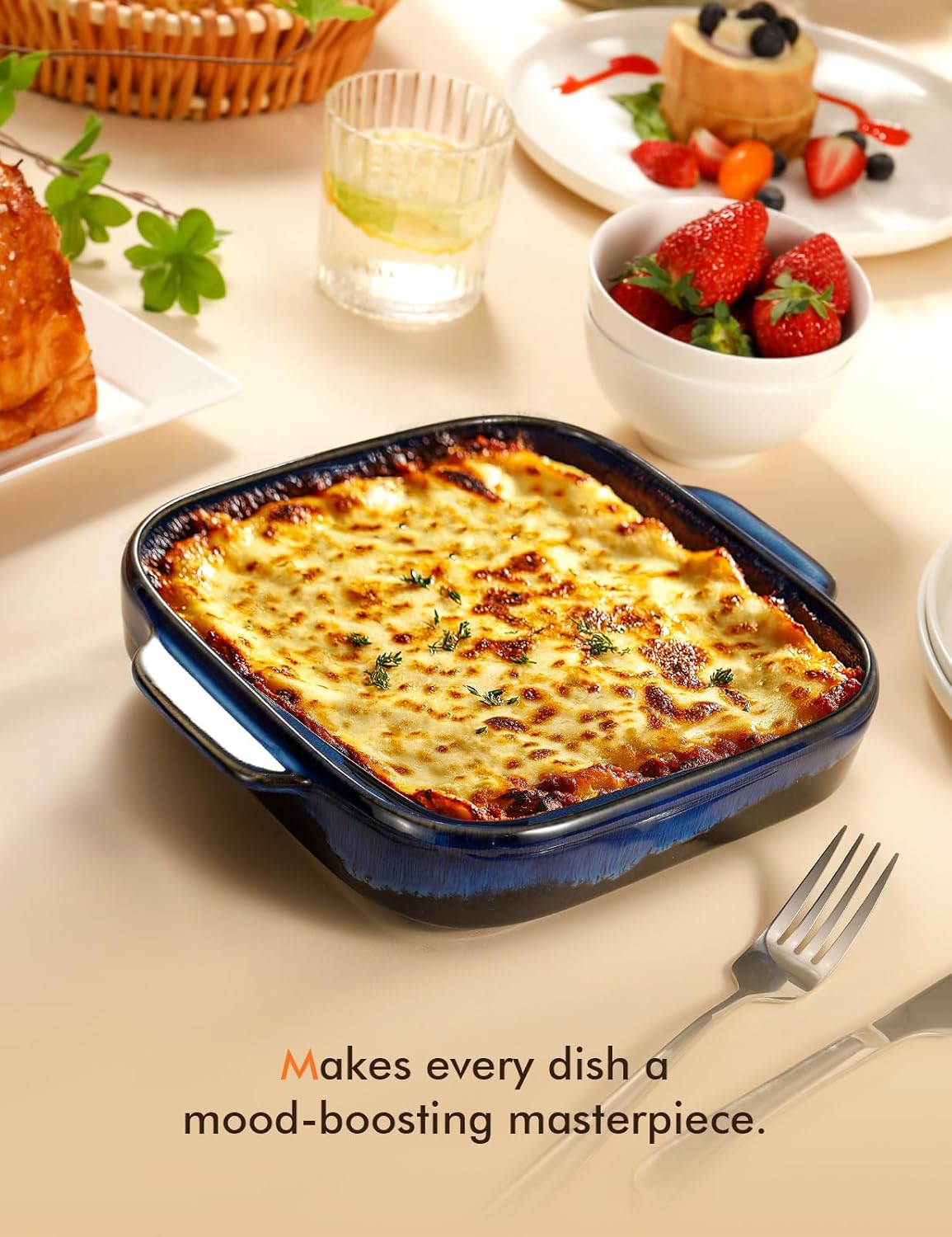 Be the first to review “8×8 Baking Pan Ceramic Square Baking Dish Lasagna Pan with Double Handles Deep Casserole Dish for Brownie, Lasagna, Roasting and Great for Kitchen Decor (Reactive Glaze Blue)”