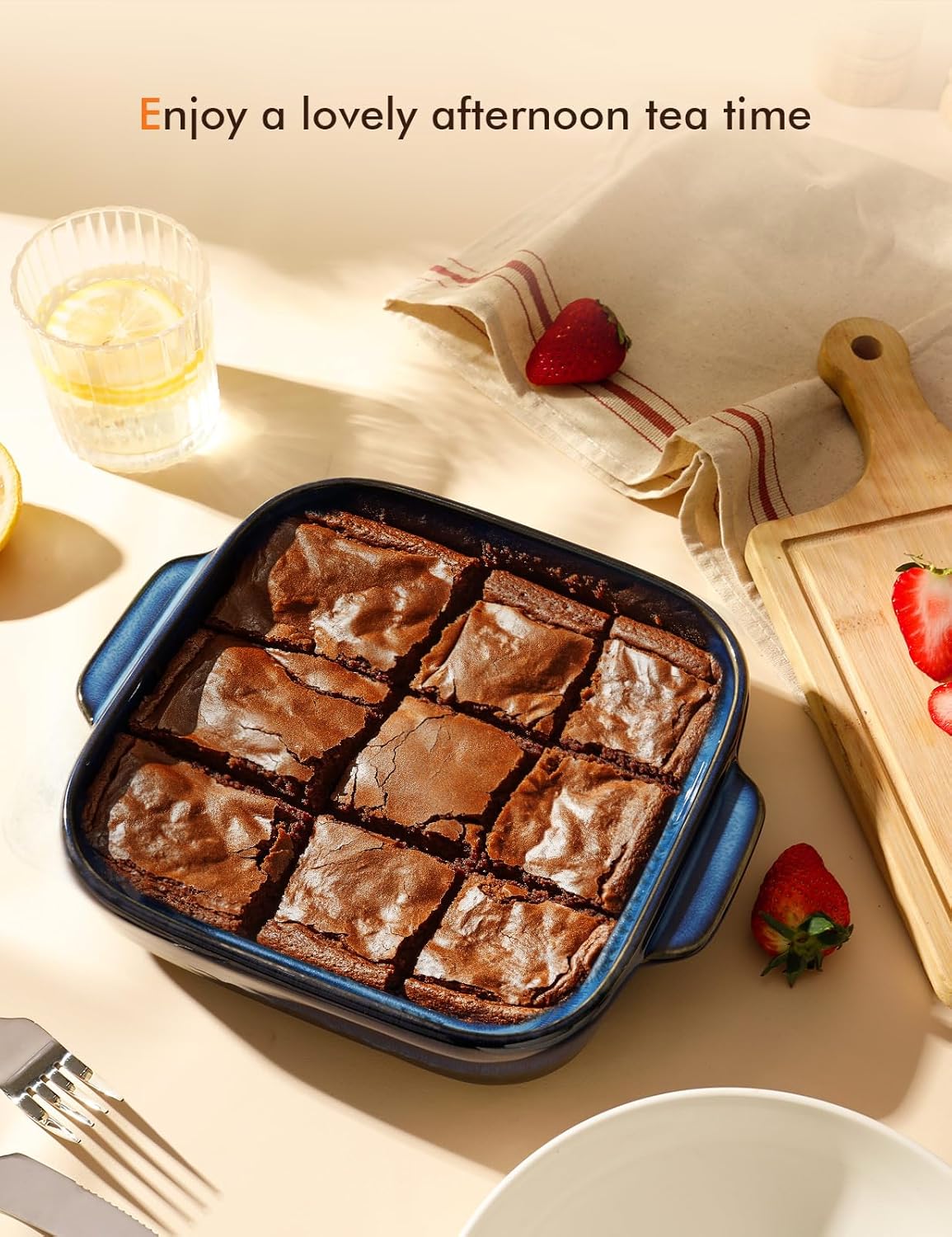 Versatile Baking Dish for Multiple Needs:The 8*8 inch Baking Dish size is perfect for a variety of baking and cooking needs, such as lasagna, casseroles, enchiladas, gratin, roasted meat, and brownies.The Baking Pan ideal dimensions make it suitable for baking, serving, storing, and reheating all in one dish, providing maximum convenience for baking lovers.