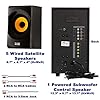 Acoustic Audio by Goldwood AA5170 Bluetooth 5 1 Speaker System Stream music from your phone to the built in Bluetooth Receiver Integrated Power Amplifier with 700 Watts System Power Pro Surround Function Automatically Converts Stereo to 5 1 Sound Easy Plug and Play Connections Standard RCA inputs connect to most audio sources 6 Independent RCA Inputs for True Surround Stereo RCA AUX Inputs Illuminated Display with Front Panel Controls USB Drive Input and SD Card Input FM Tuner Full Function Remote Magnetically Shielded Wired Satellite Speakers 1 Powered Subwoofer Speaker is (H x W x D) 12 3″ x 6 7″ x 13 1″ Frequency Response is 20Hz-20 kHz Enhanced Bass Boost Ported Design 5 Wired Satellite Speakers are (H x W x D) 6 7″ x 4 1″ x 4″ each 2 Front and 1 Center Satellite Speakers have 6 Foot Single RCA Cables 2 Rear Speakers have 12 Foot Single RCA Cables System Requirements Standard US 110V Grounded Wall Plug Any audio device with a standard 3 5mm Headphone RCA Stereo or RCA 6 Channel Surround Audio Outputs Search AA5170D for this model with Smart TV Digital Optical Input Applications TV or Home Entertainment System Laptop or Personal Computer DVD or MP3 Player Cell Phone or Tablet Gaming What’s in the box 1 Powered Subwoofer Speaker 5 Passive Wired Satellite Speakers Full Function Remote RCA Antenna Cable 3 5mm to RCA Cable 2 RCA to RCA Jack Cables Instruction Manual