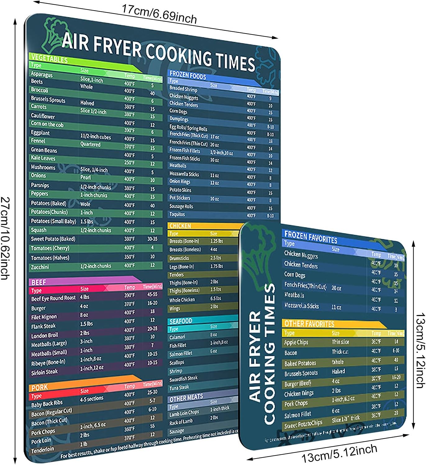 This 2 pack air fryer magnet set is one of the essential accessories for air fryer,It includes cooking times,temperature,and size for the common foods.
