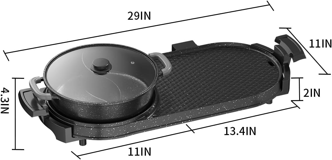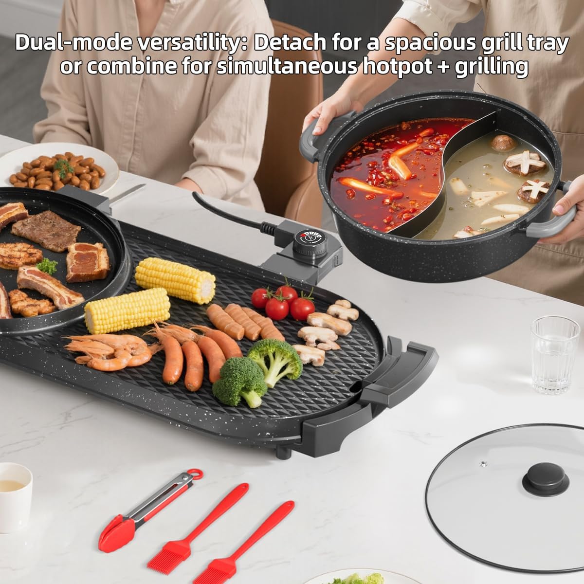 🔥 Dinner Party Hero in 1 Device! – Switch between sizzling BBQ meats (think steak, shrimp, veggies!) and bubbling hot pot broths in seconds. Removable split pan for spicy & mild lovers!