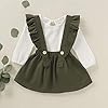 Toddler Baby Girl Linen Suspender Skirt Set Long Sleeve Shirts Ruffled Dress Clothes