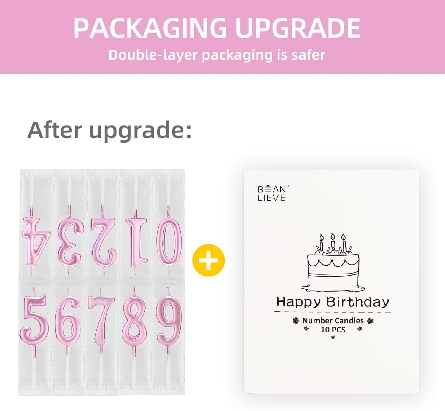 GOOD INDEPENDENT PACKAGING: numeral birthday candles from 0 to 9, a total of 10, each digital candle is packaged in a separate PVC box, which can effectively reduce the damage to the product during transportation.