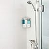 Eliminates shower bottle clutter and container lifts off the wall for easy cleaning and re-filling