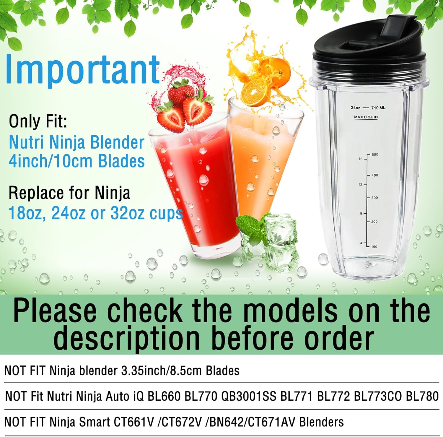 【Attention/Important】Please confirm first that your Ninja Blender meets these necessary conditions: 1,Please make sure your blender model is on our compatibility list. The model number (including the last two digits) must be exactly the same; 2,Fit for 4inch/10cm ninja blender blades, Not for 3.35inch/8.5cm ninja blender blades; 3,Can replace the original ninja 24Oz, 18Oz and 32 Oz cups. Can’t replace 16oz cups.