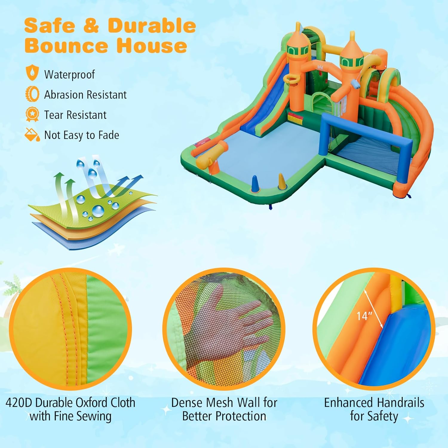 BOUNTECH Inflatable Water Slide, 9 in 1 Dual Slides Kids Water Park Jump Castle Water Soccer, Big Splash Pool, Water Slides Inflatables for Outdoor, Backyard Party Water Slide Bounce House with Blower