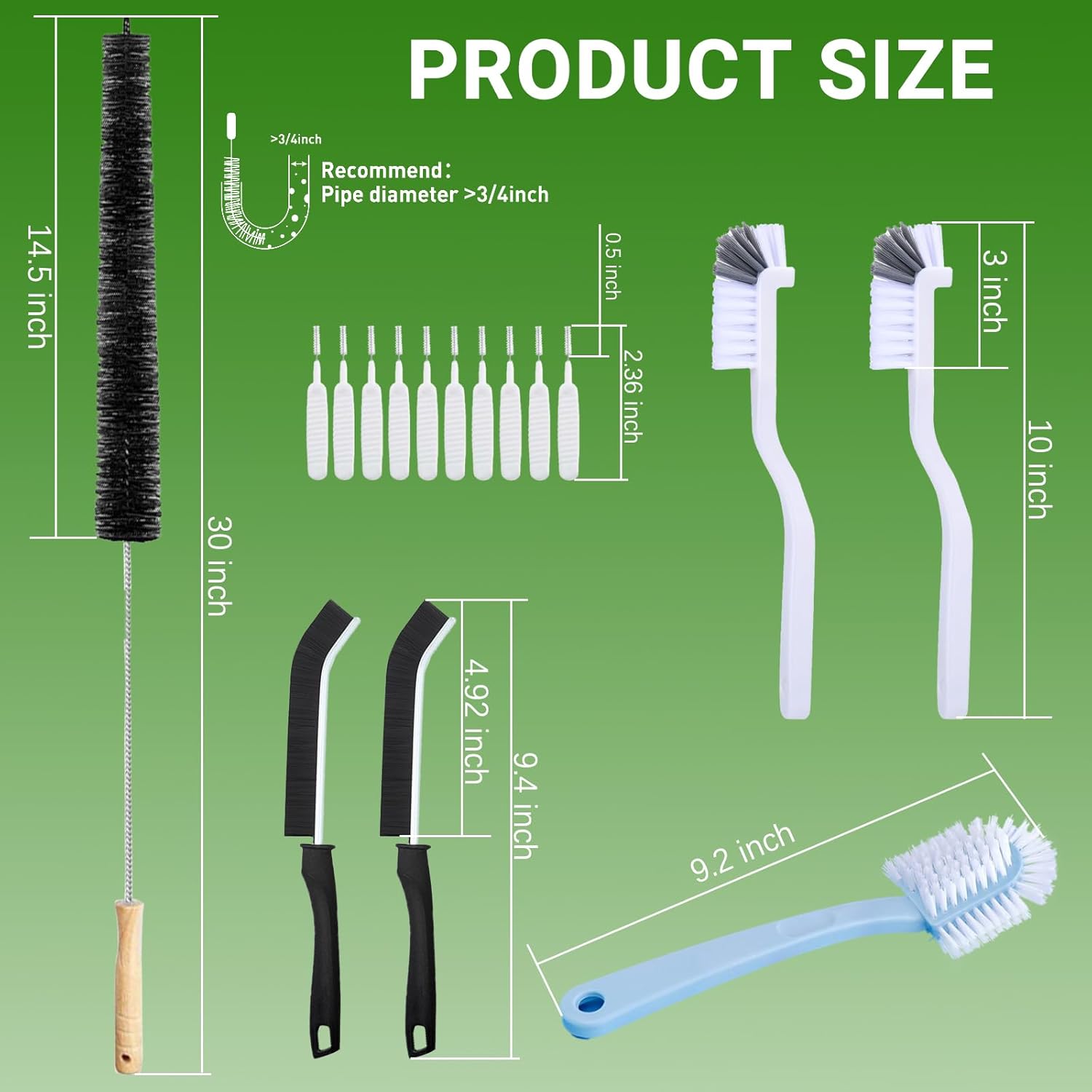 Multi-Purpose Cleaning Brush Set:This 16-piece kit includes a hard-bristle crevice cleaning brush, shower head cleaning brush (10 specialized small-hole tools), dryer lint brush, washing machine cleaning brush, and vent cleaner to tackle grime in appliances, vents, and tight spaces. Perfect for kitchen, bathroom, car, grout, window tracks, tubs, and vehicle maintenance.