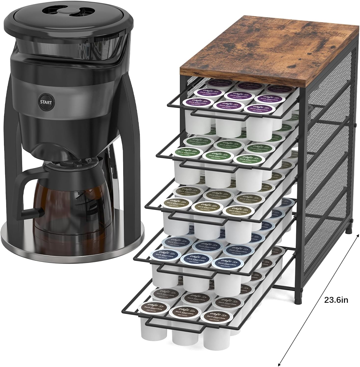 Coffee Pod Drawer for K Cups 90 Pod Pack Capacity Rack K Cups Holder Drawer Organizer for Coffee Station 5 Tier K Cups Coffee Pods Holder Suit for Home Office Cafe Counter, Black and Brown